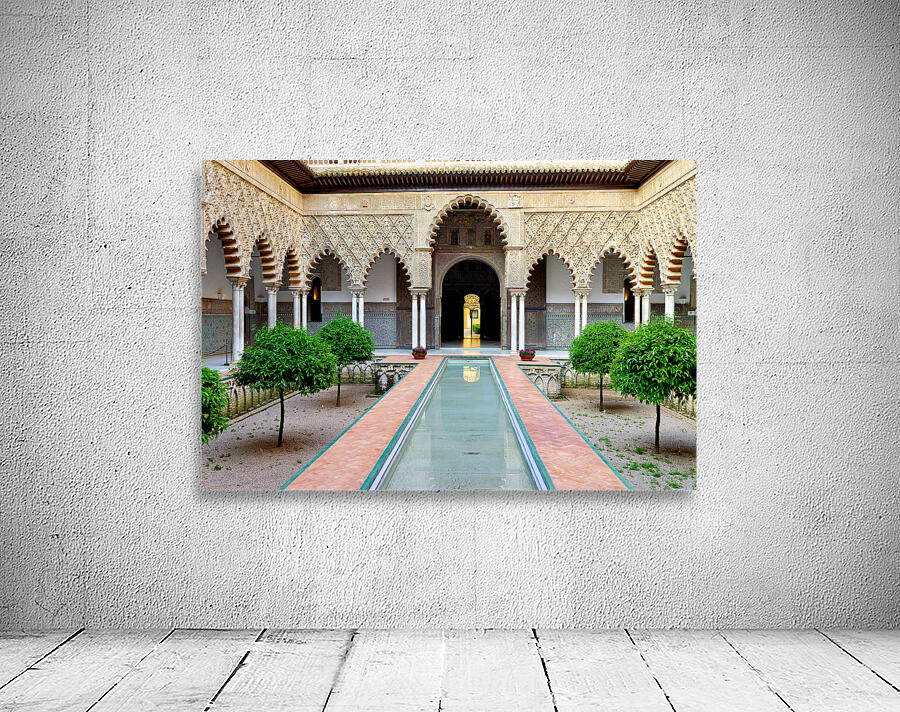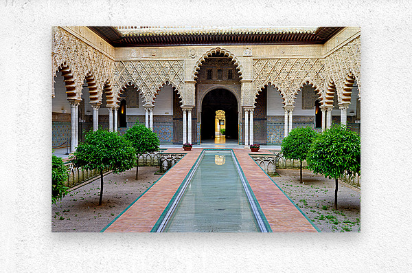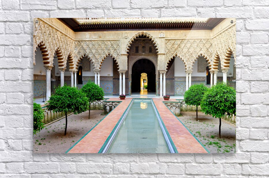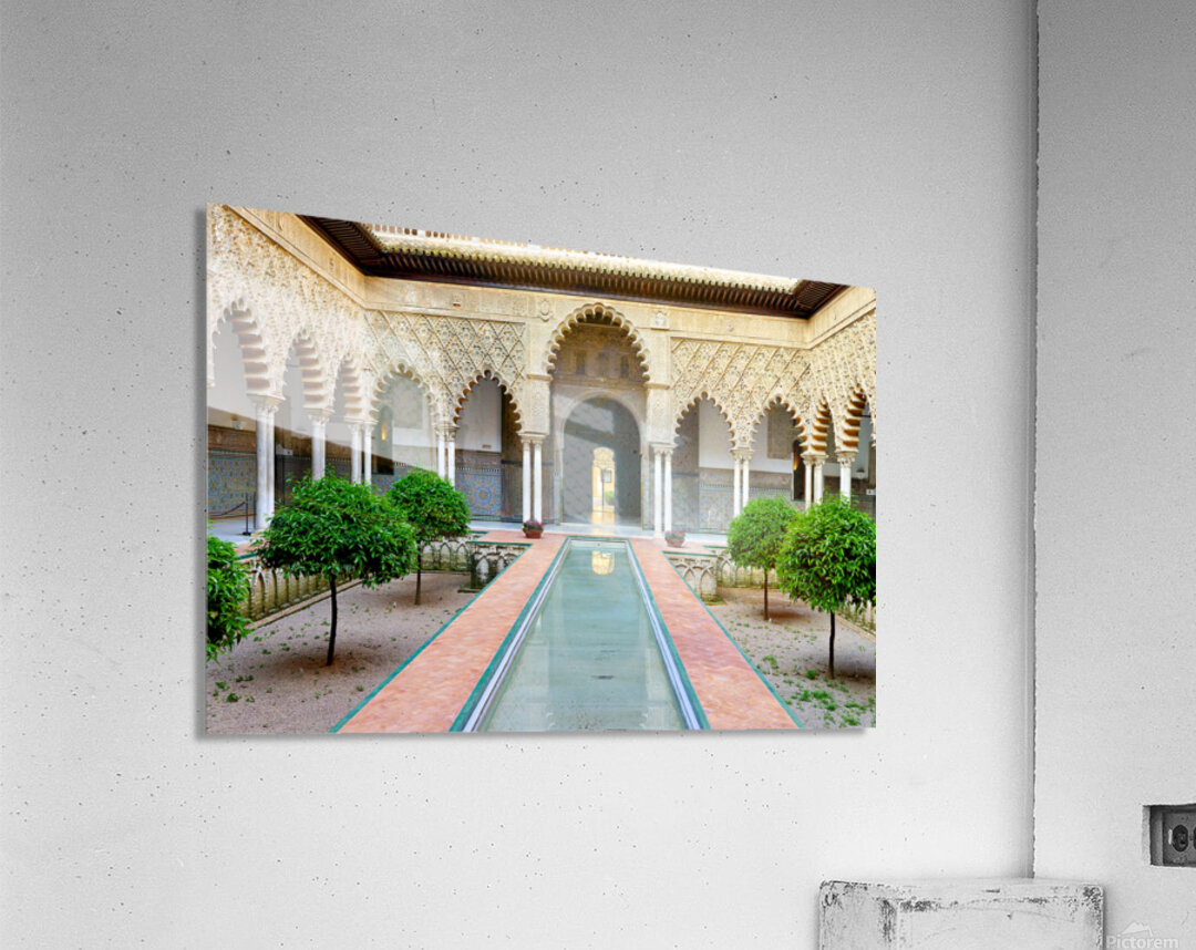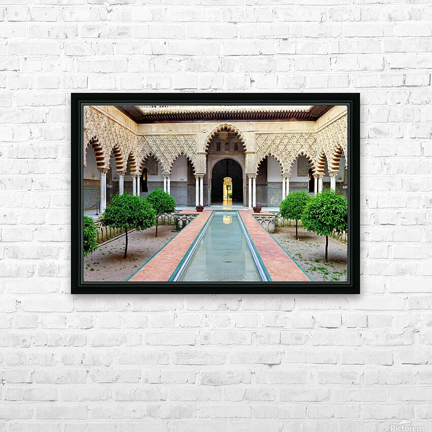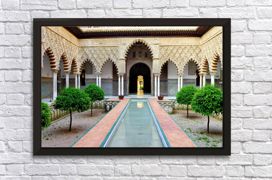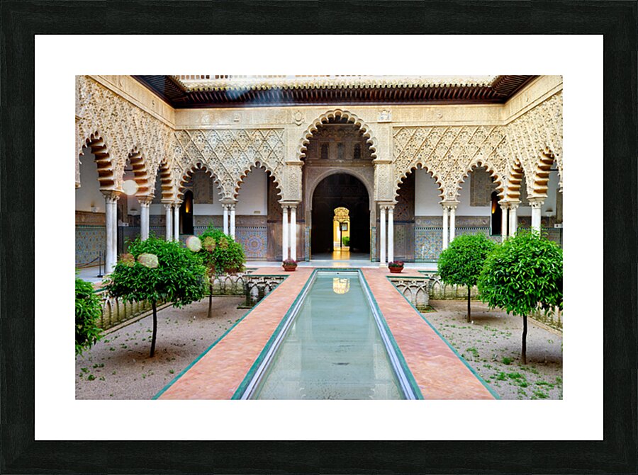 "Visit historic Alcazar in Seville Andalusia Spain" in a framed print.