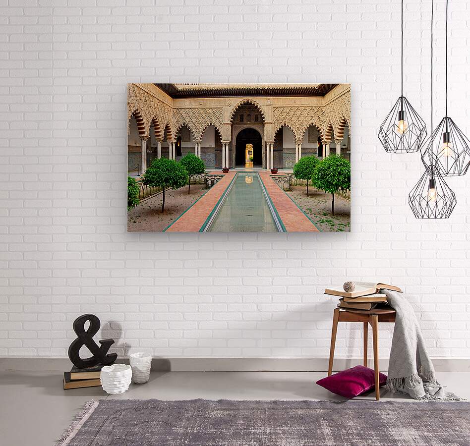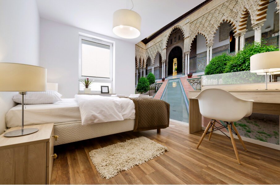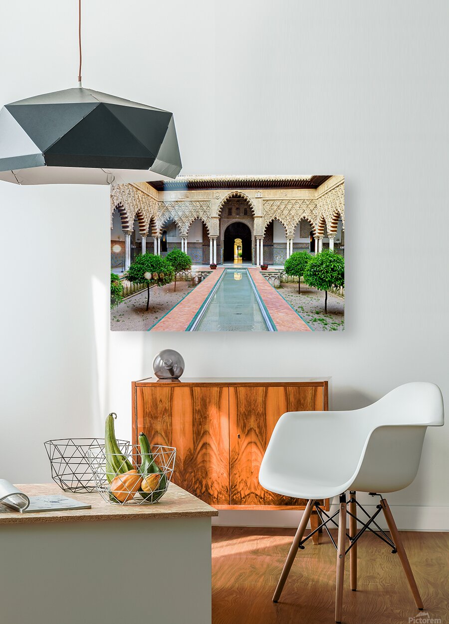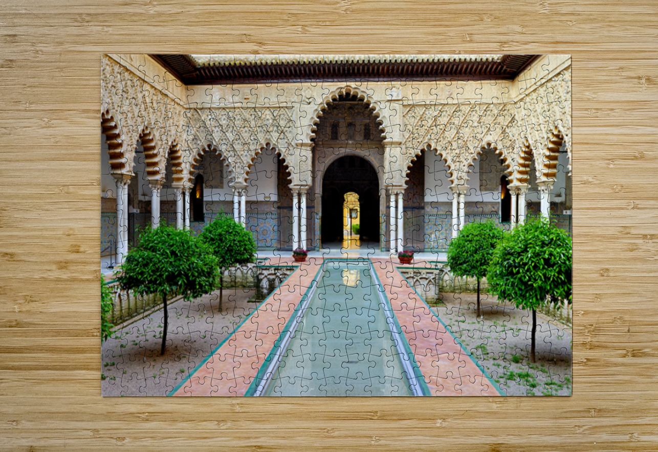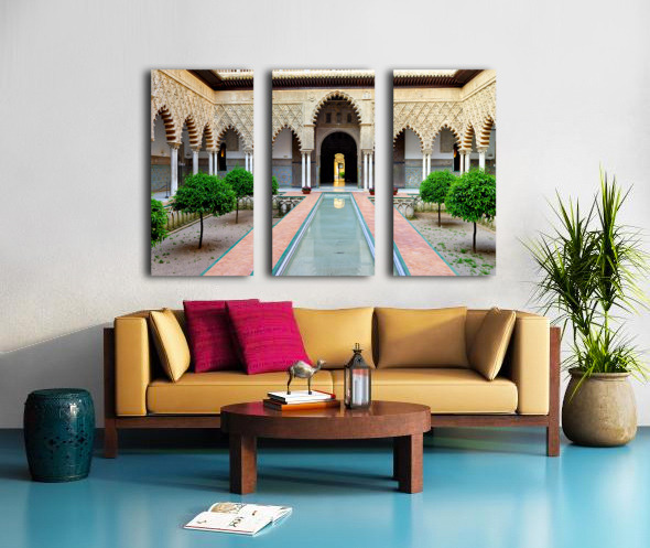 "Visit historic Alcazar in Seville Andalusia Spain" in a framed print.