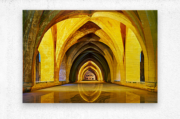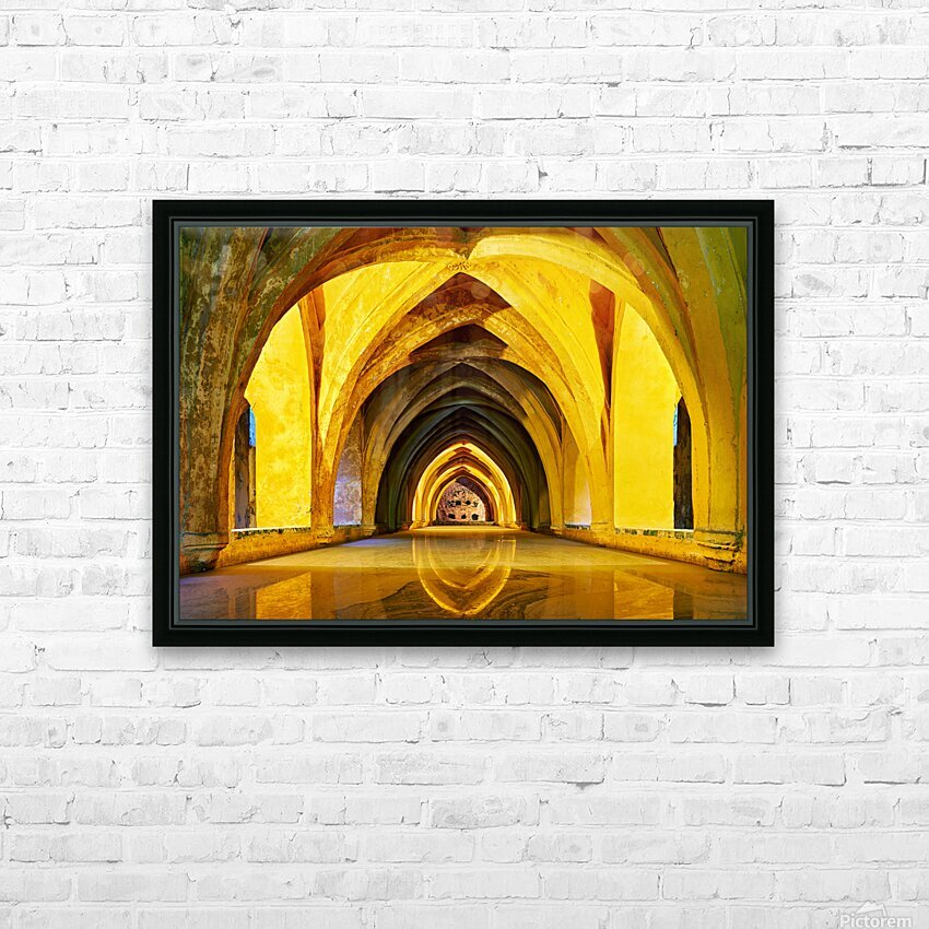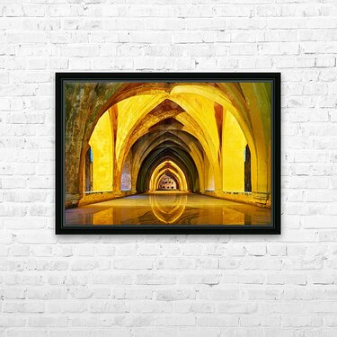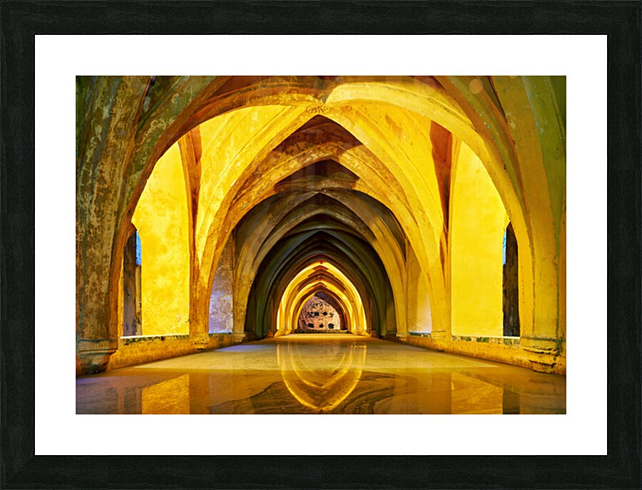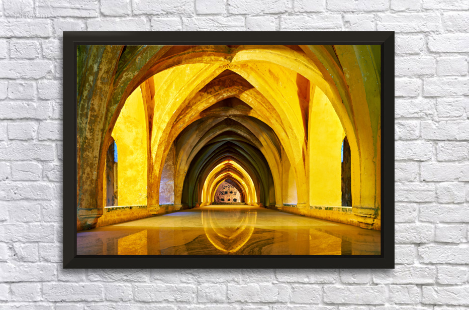 "Alcazar in Seville showcases unique architecture" in a framed print.