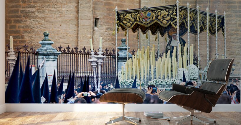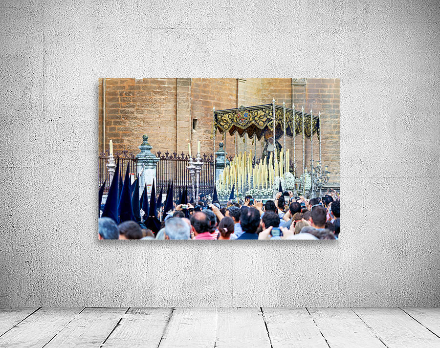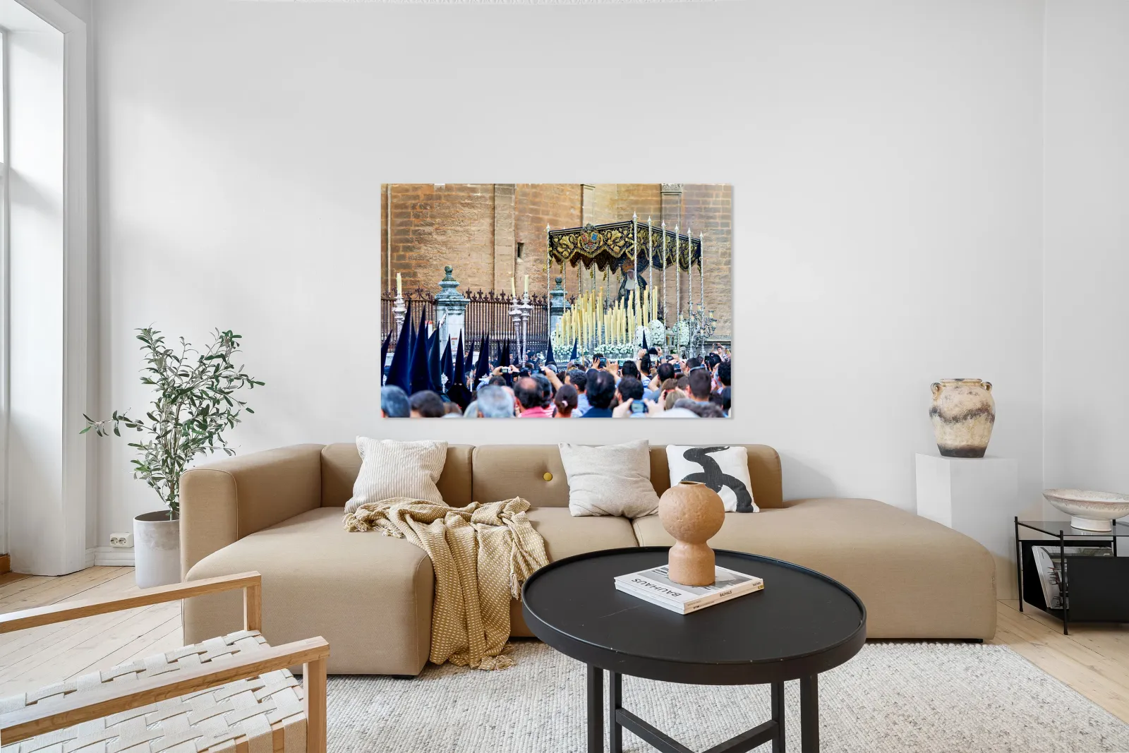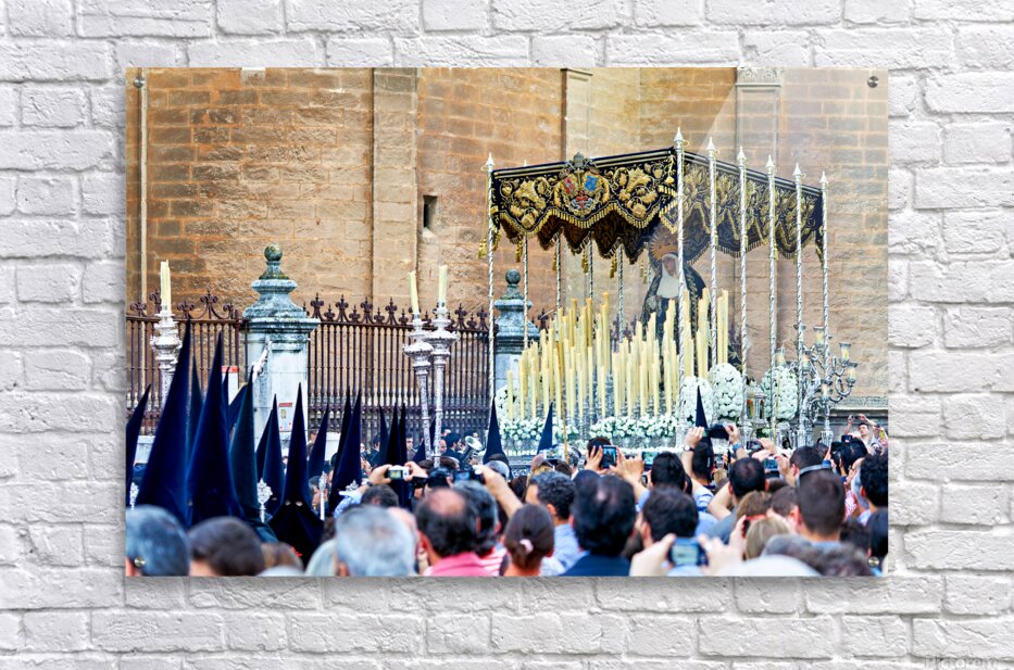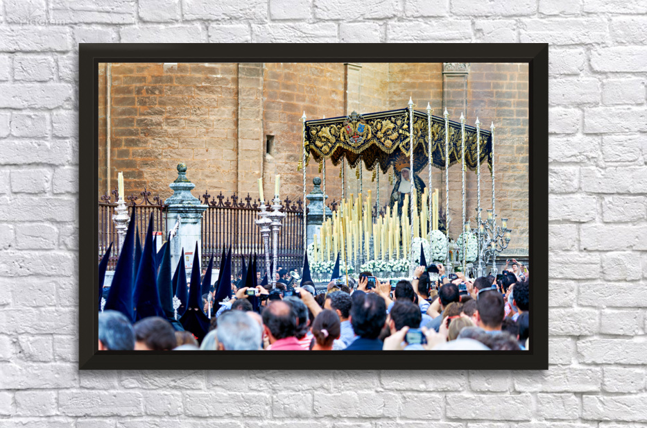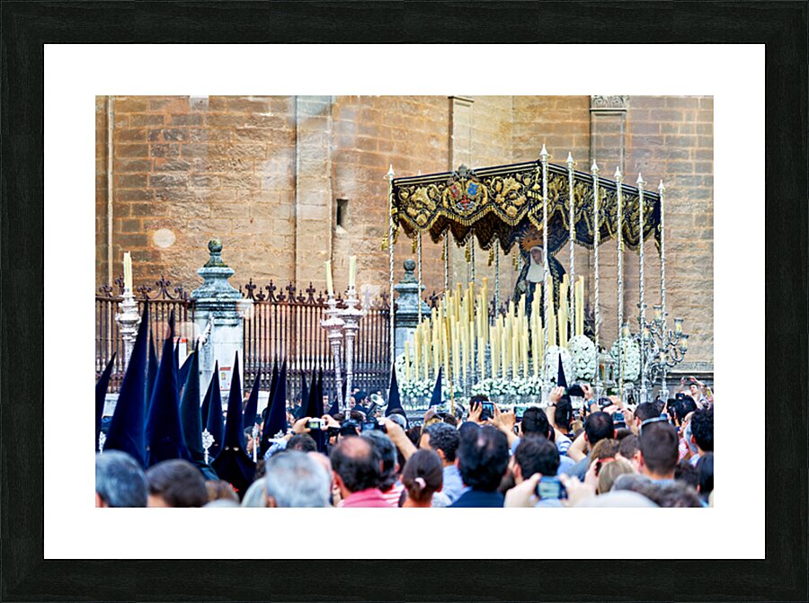 "Processions during Easter Holy Week in Seville Spain" in a framed print.