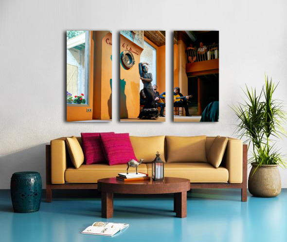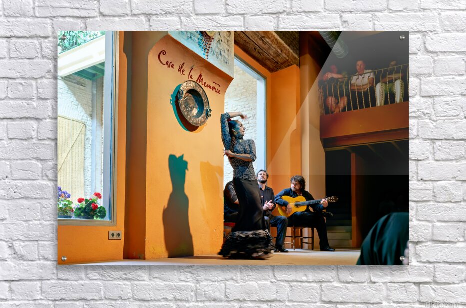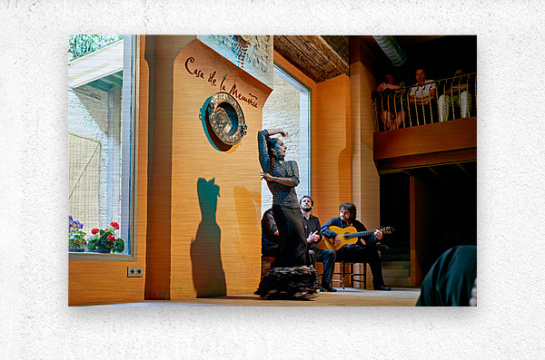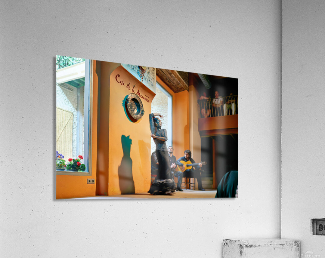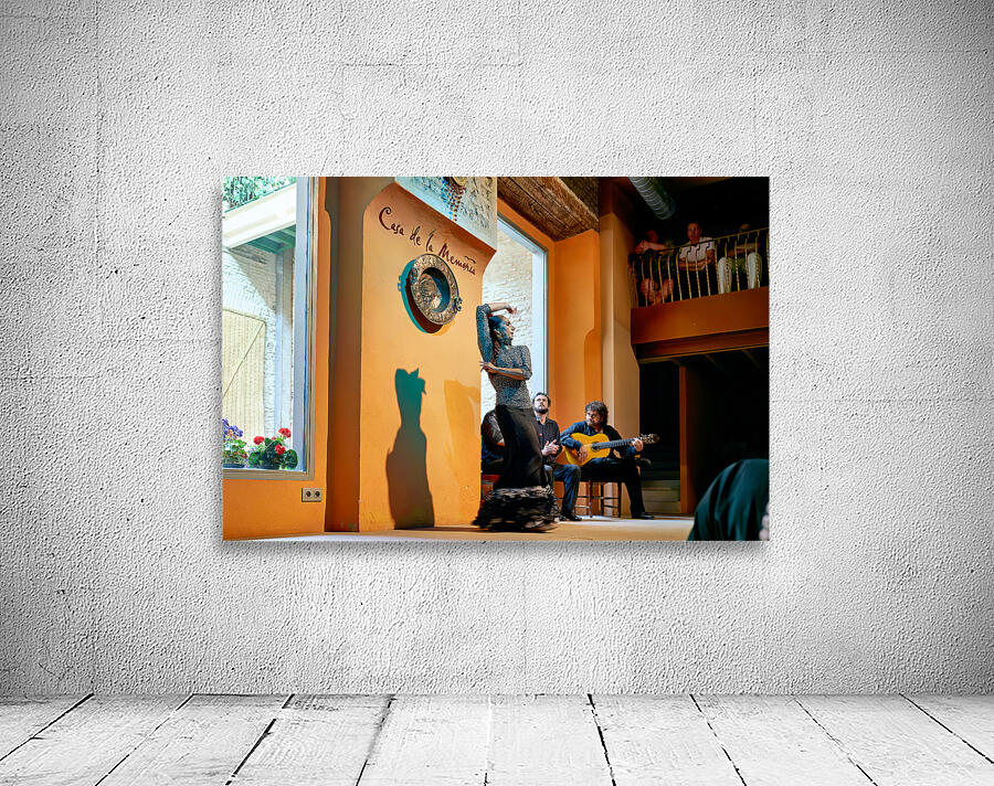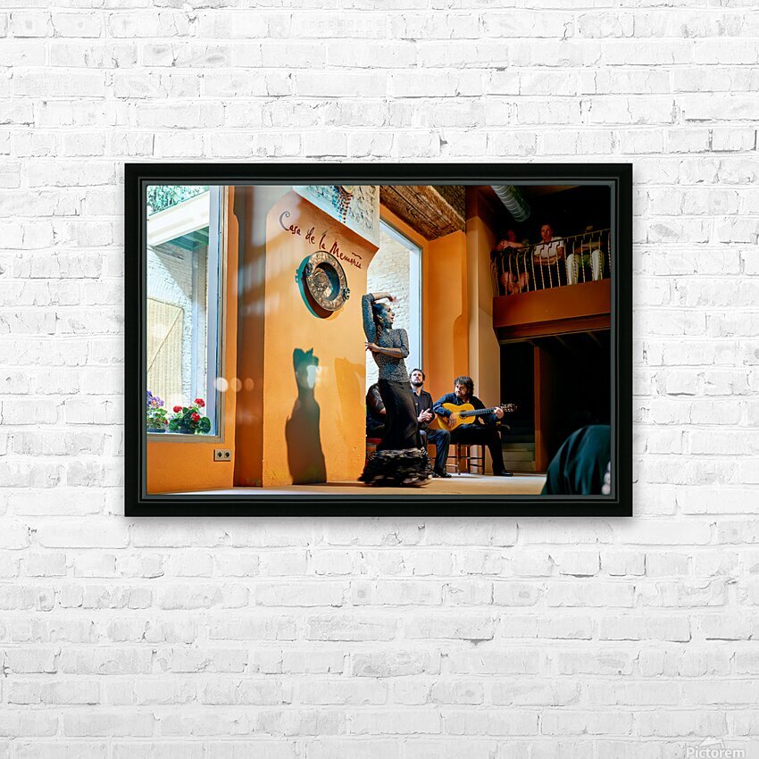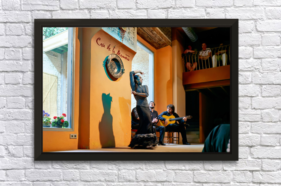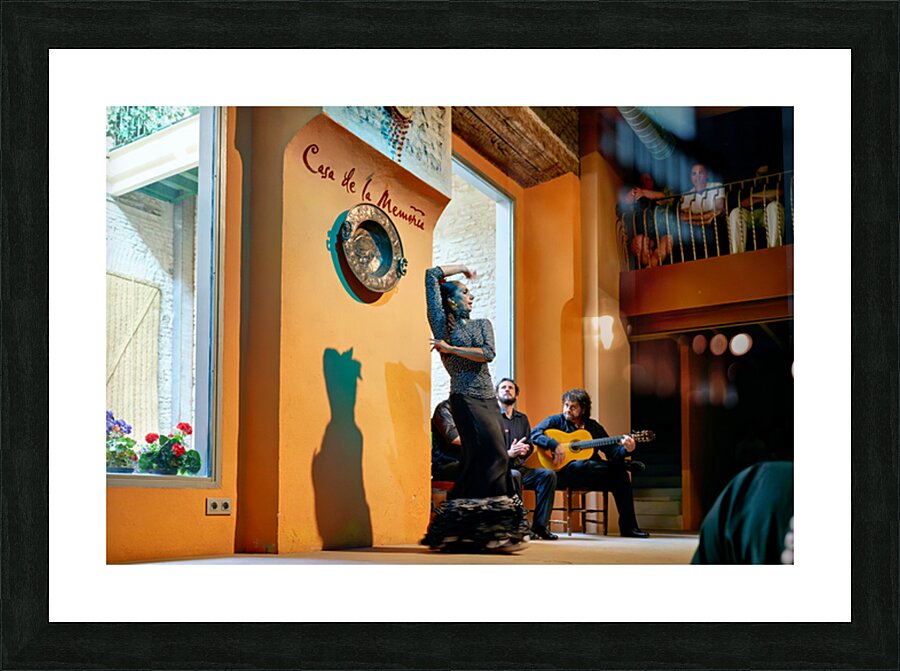 "Flamenco dancers perform in Seville Andalusia Spain" in a framed print.