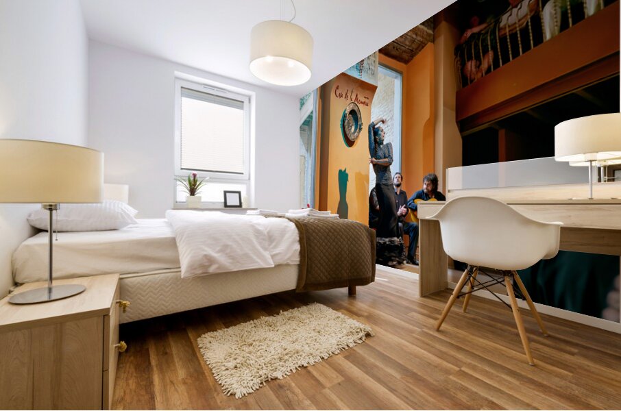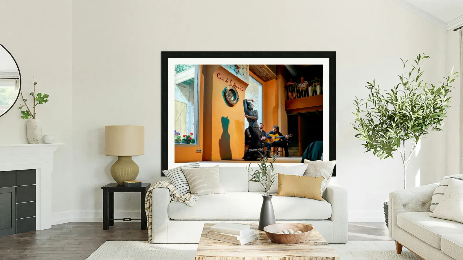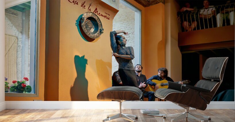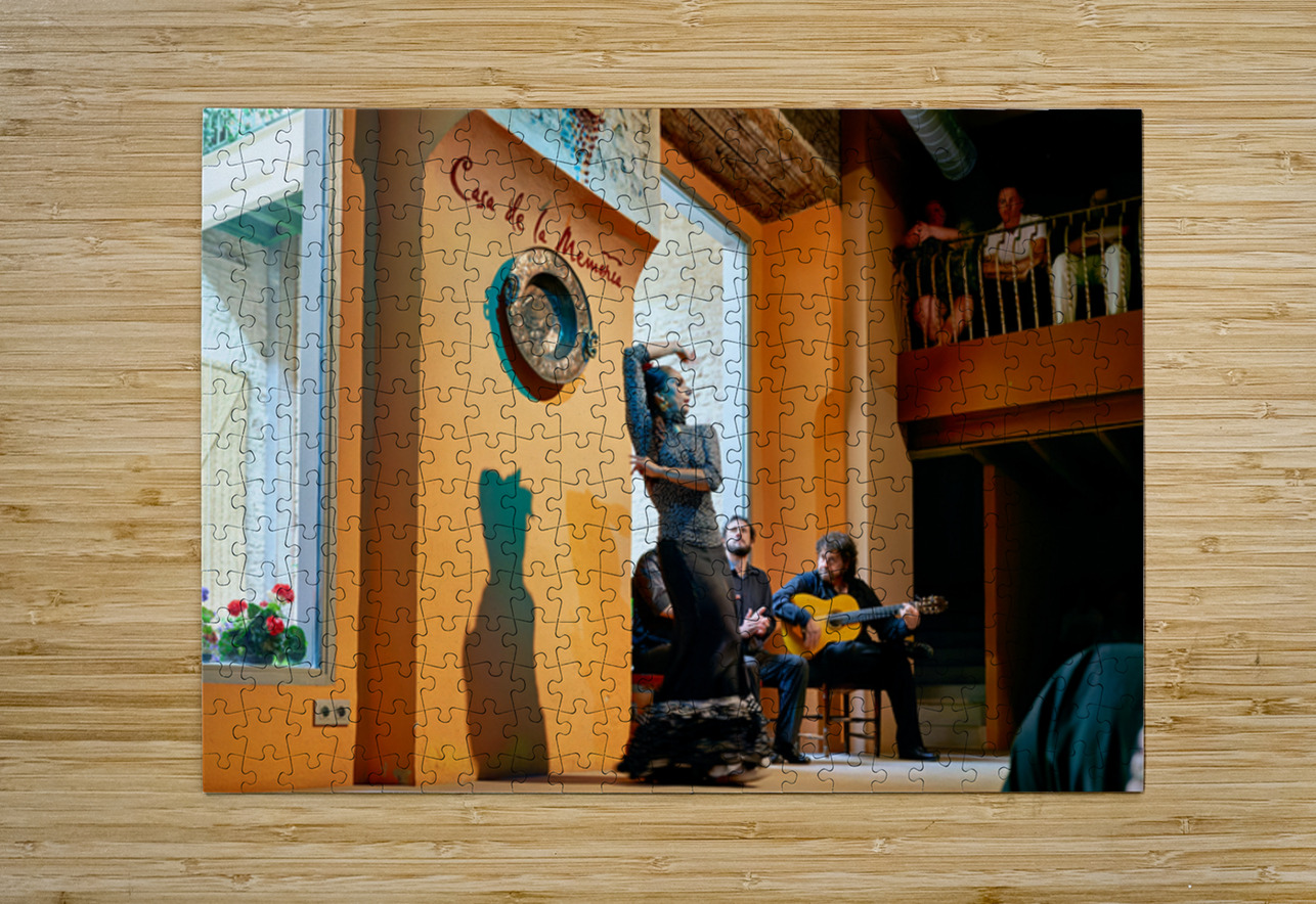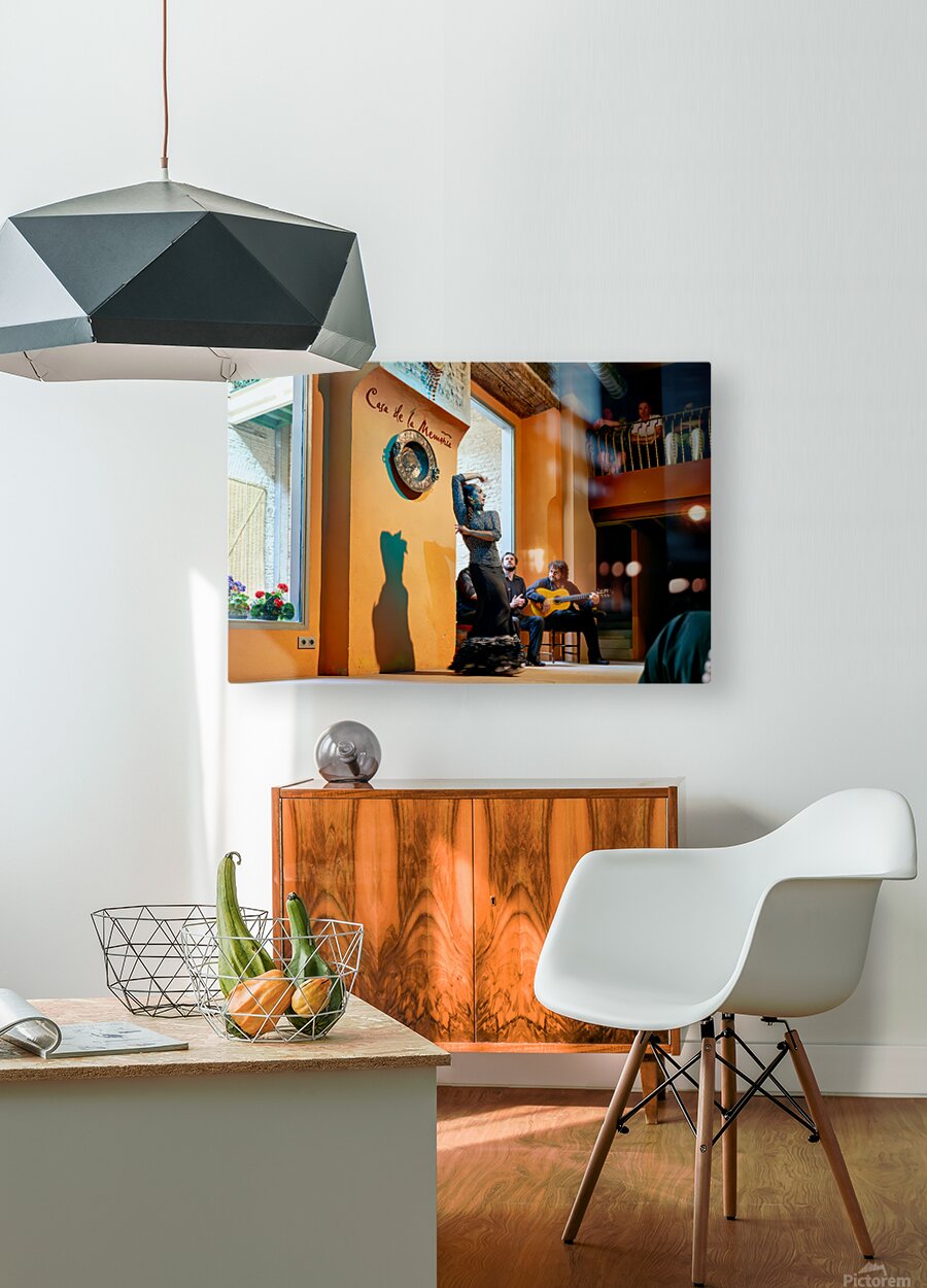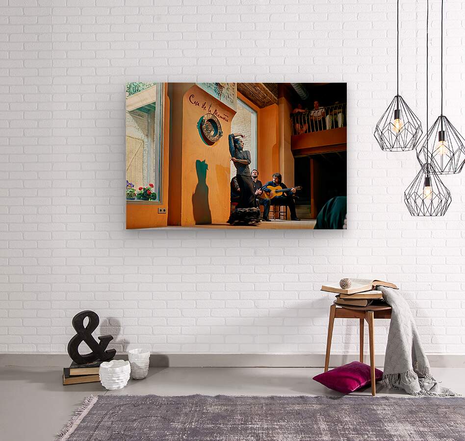 "Flamenco dancers perform in Seville Andalusia Spain" in a framed print.