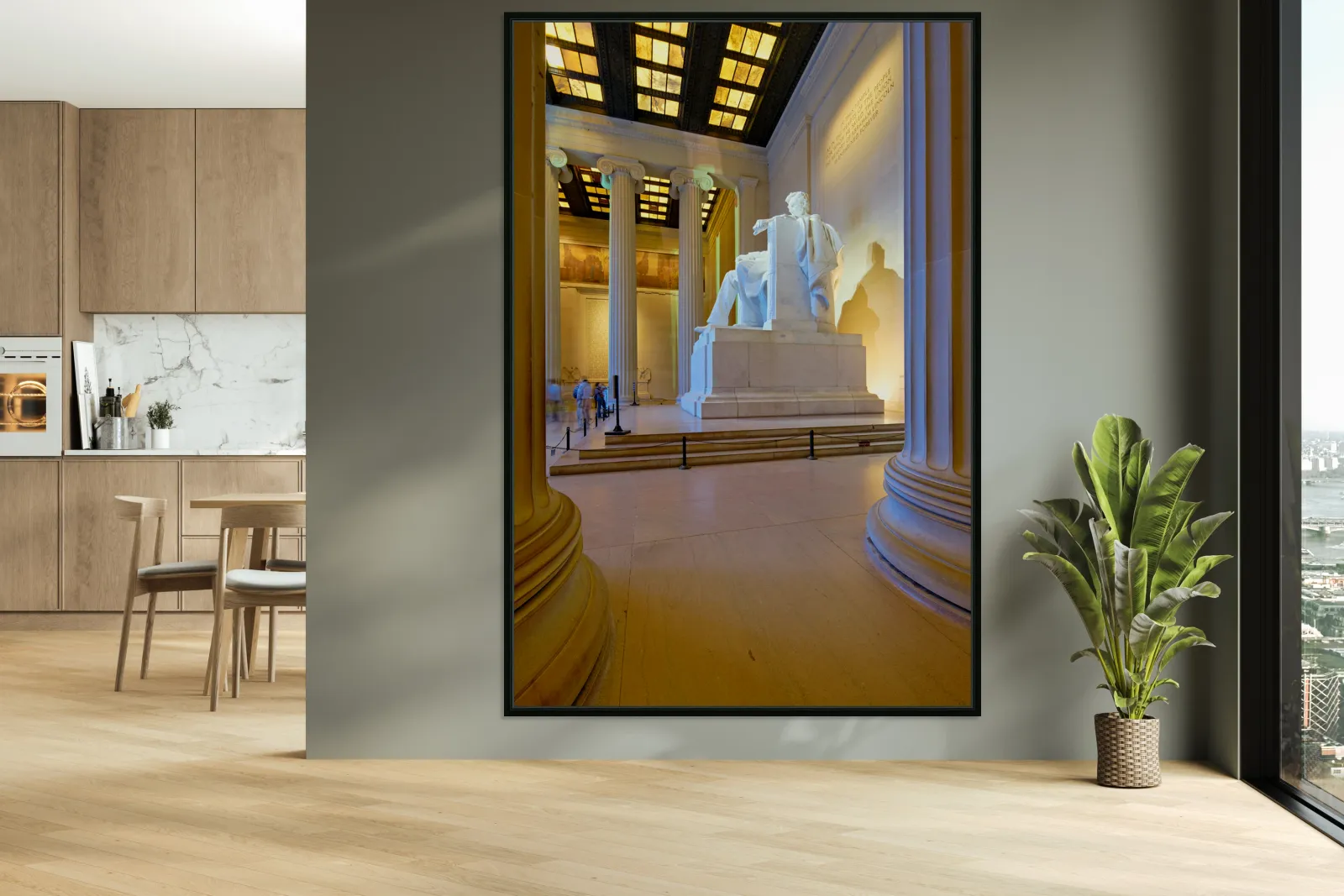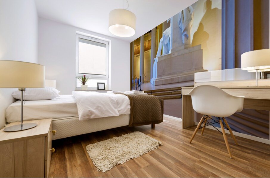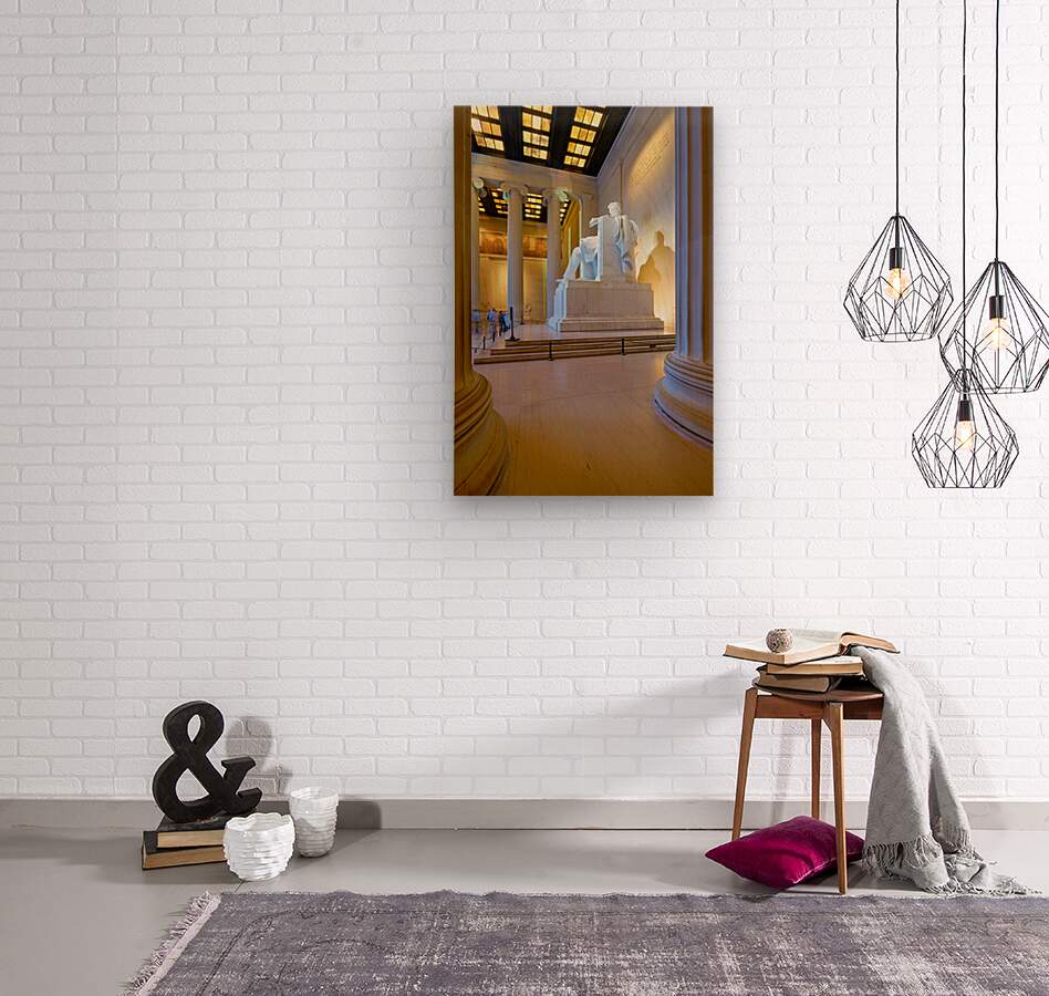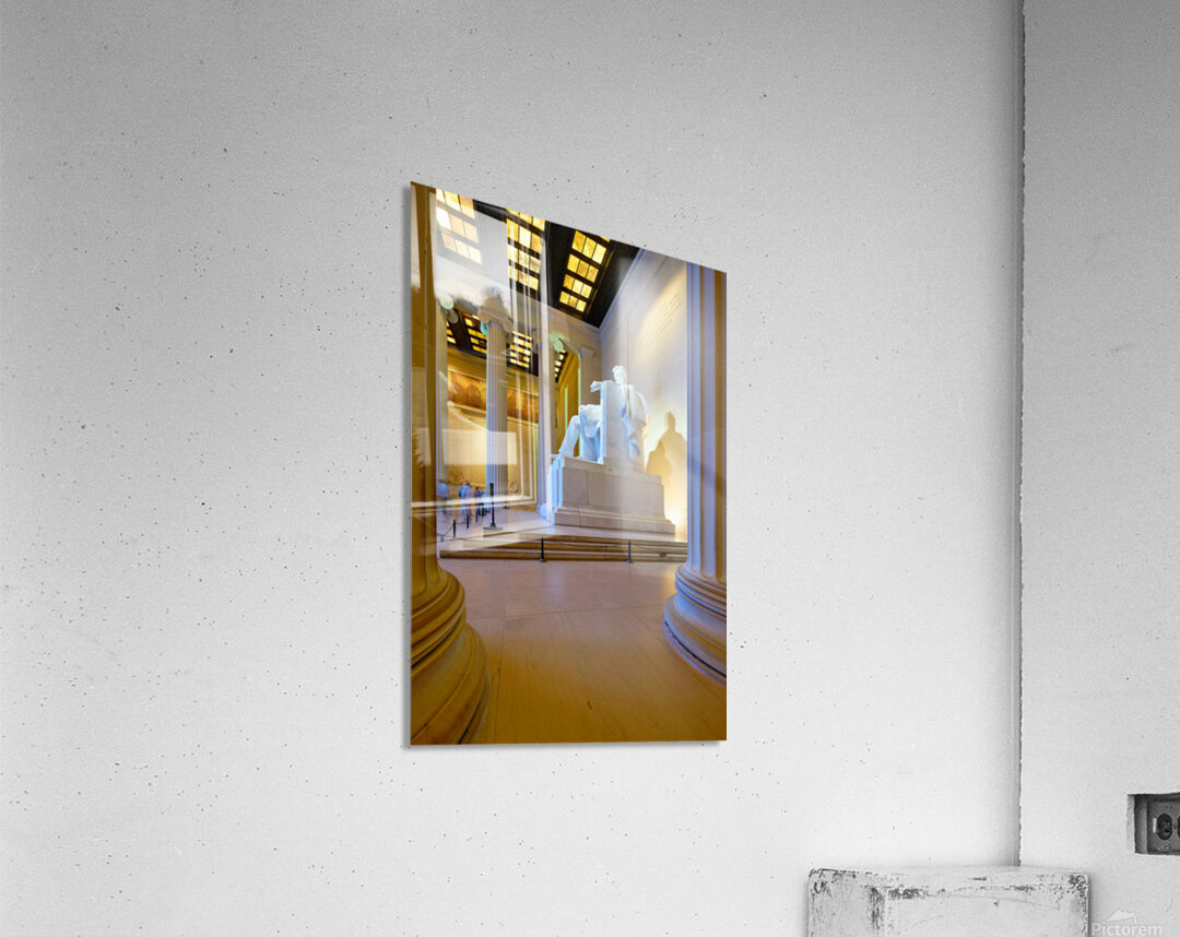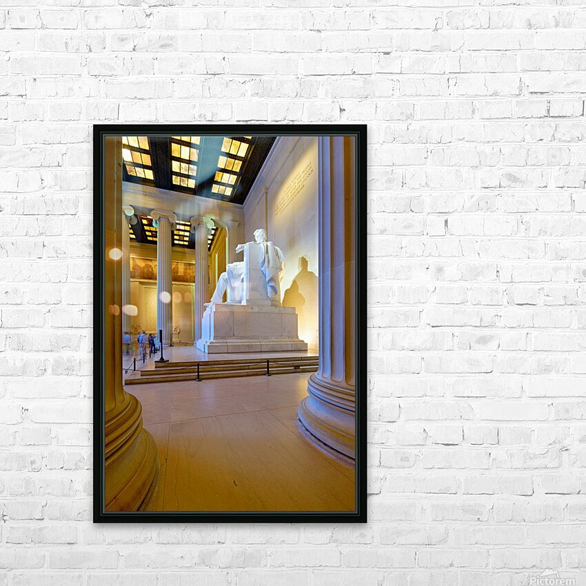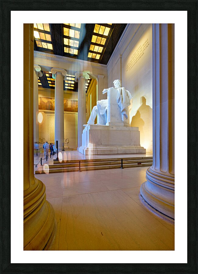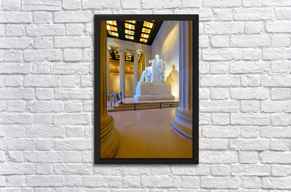 "Lincoln Memorial statue in Washington DC" in a framed print.