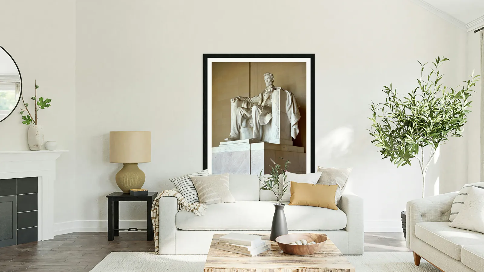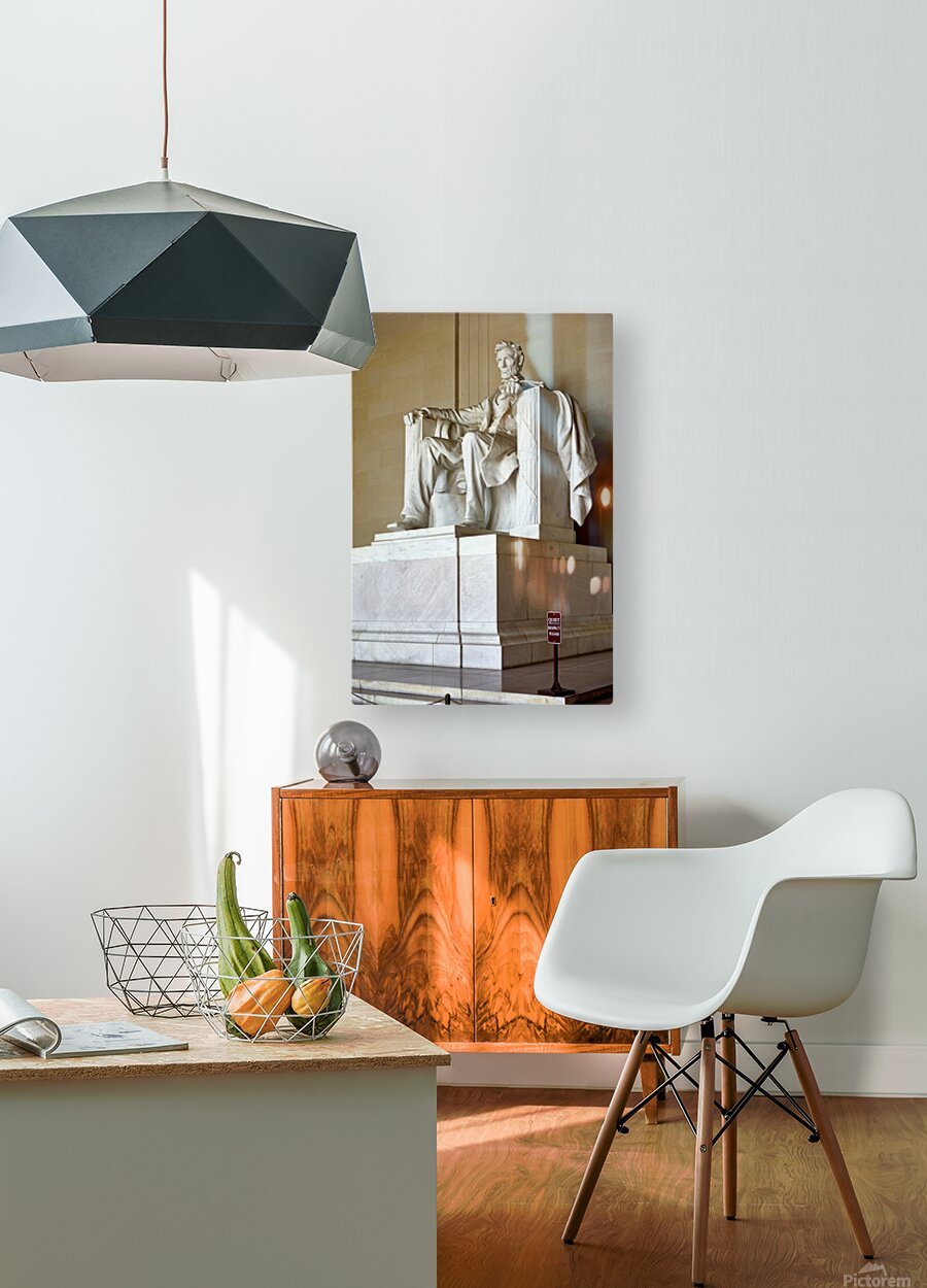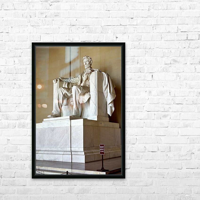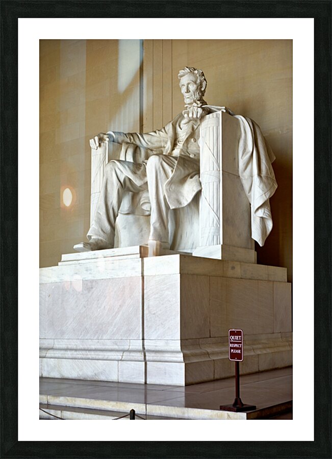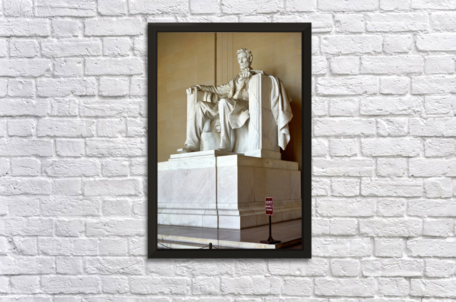 "Lincoln Memorial statue in Washington DC" in a framed print.