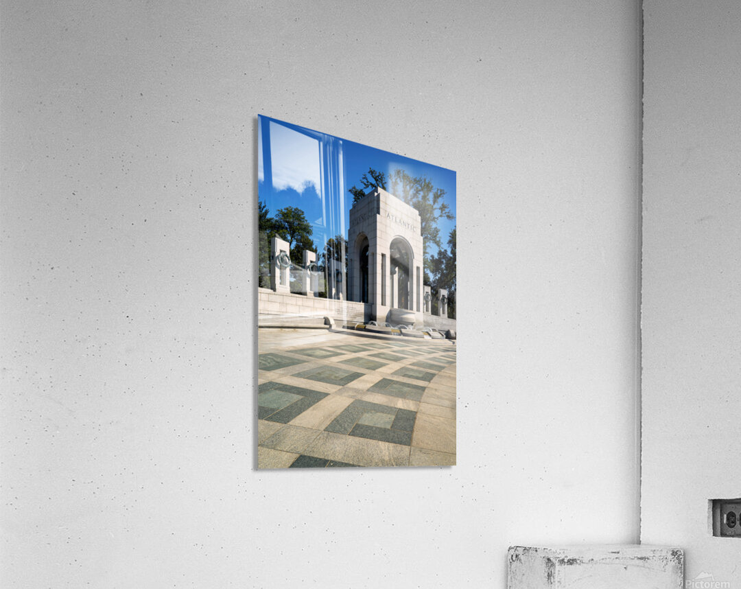 Visitors gather near the National World War II Memorial in Washington D.C. The memorial honors those who served during the war.