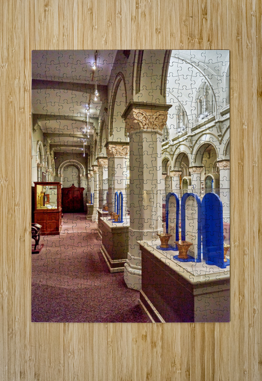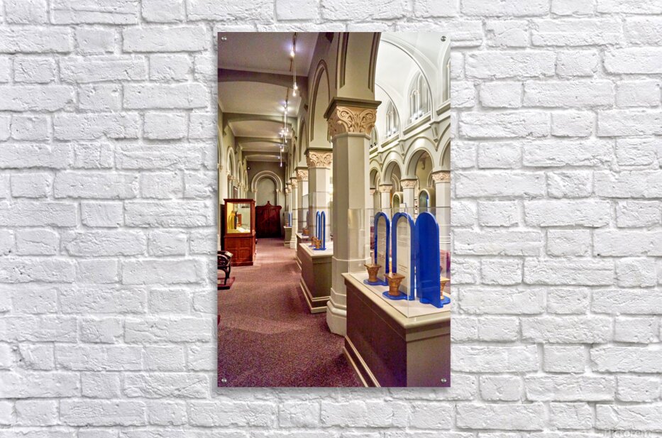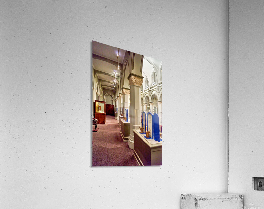 Visitors walk through the halls of the Smithsonian Institution in Washington D.C. and view various displays and artifacts inside.