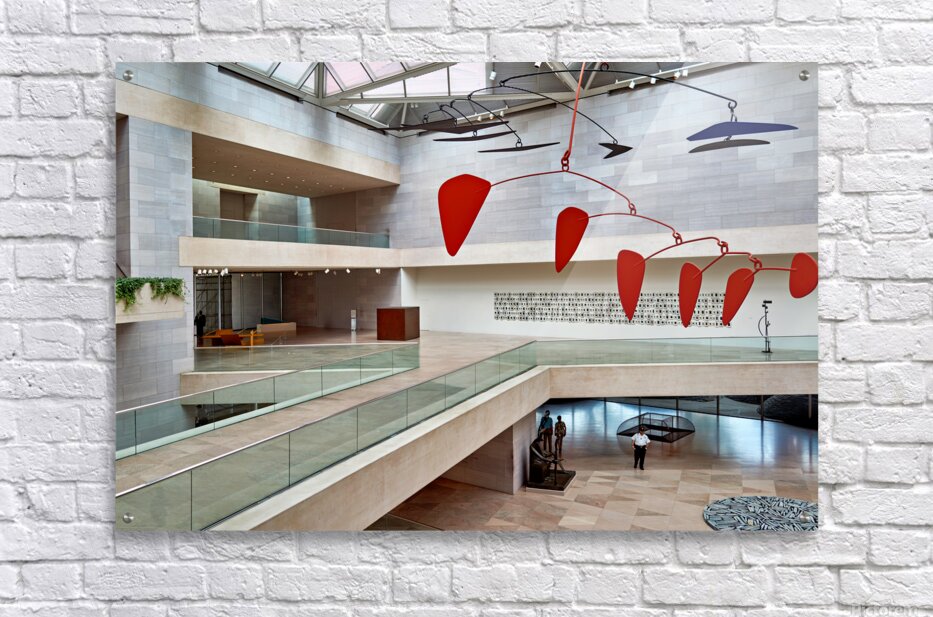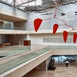 People explore the East Building of the National Gallery of Art in Washington D.C. The space features modern art and exhibits.