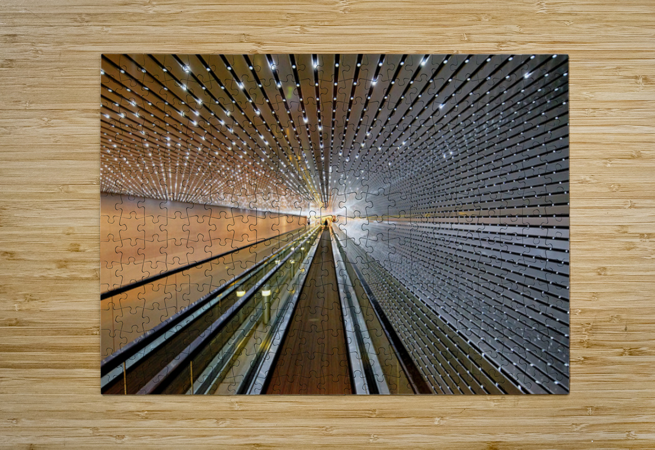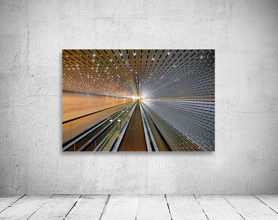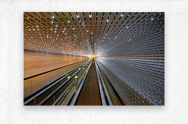 People walk through the modern walkway connecting the East and West Buildings of the National Gallery of Art in Washington D.C.