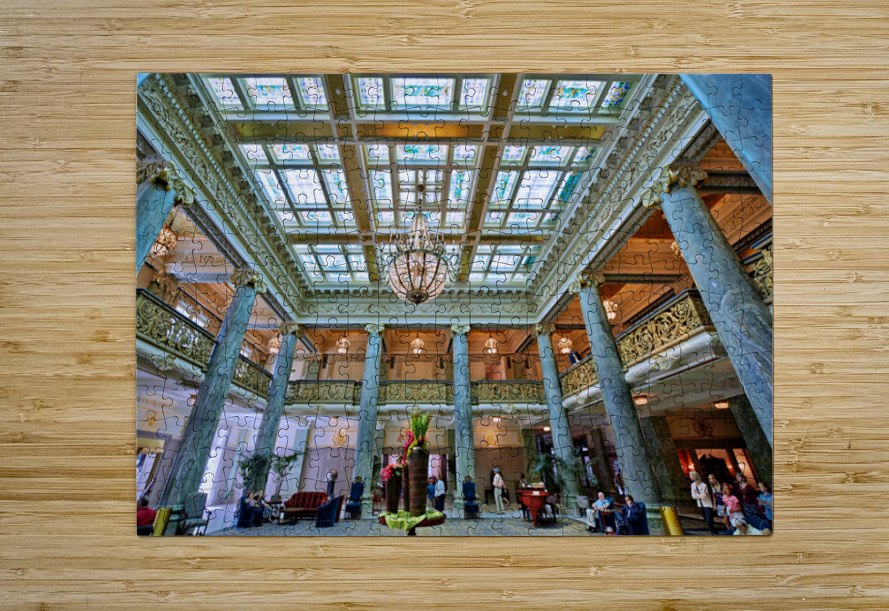 Visitors walk through the grand interior of the Joseph Smith Memorial Building in Salt Lake City Utah.