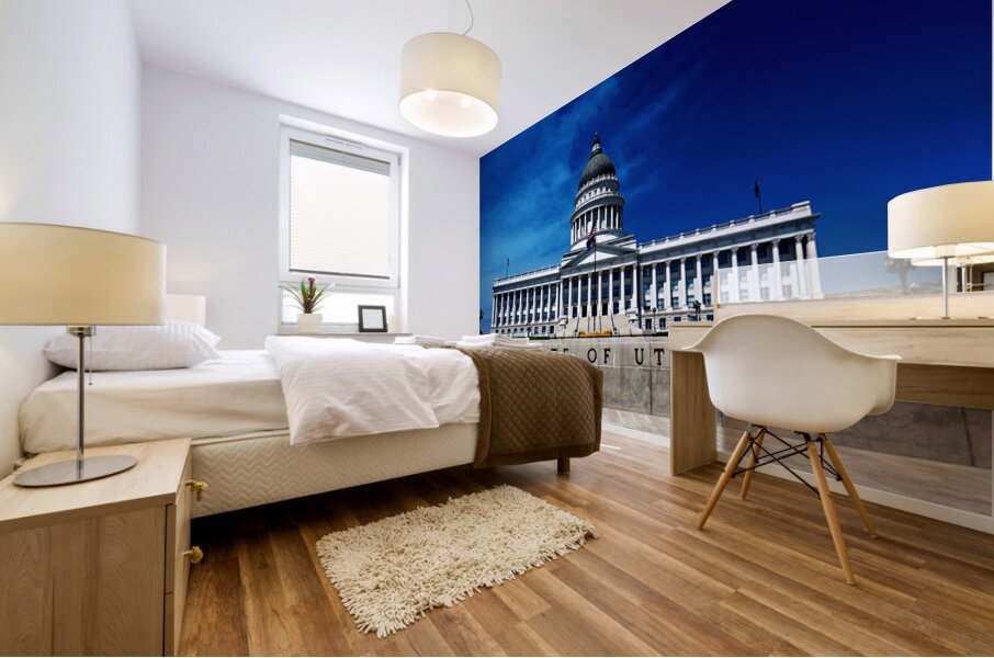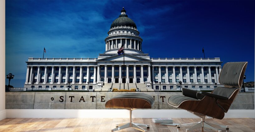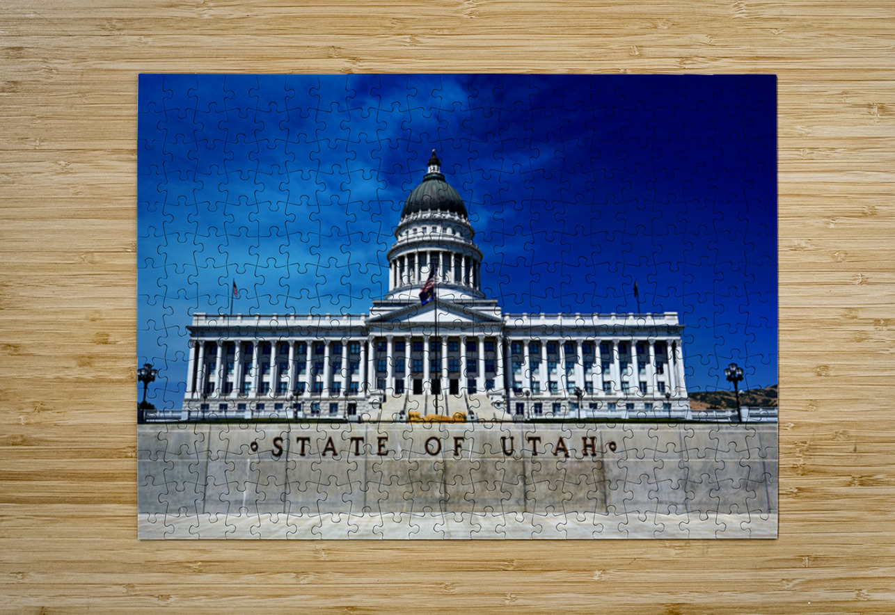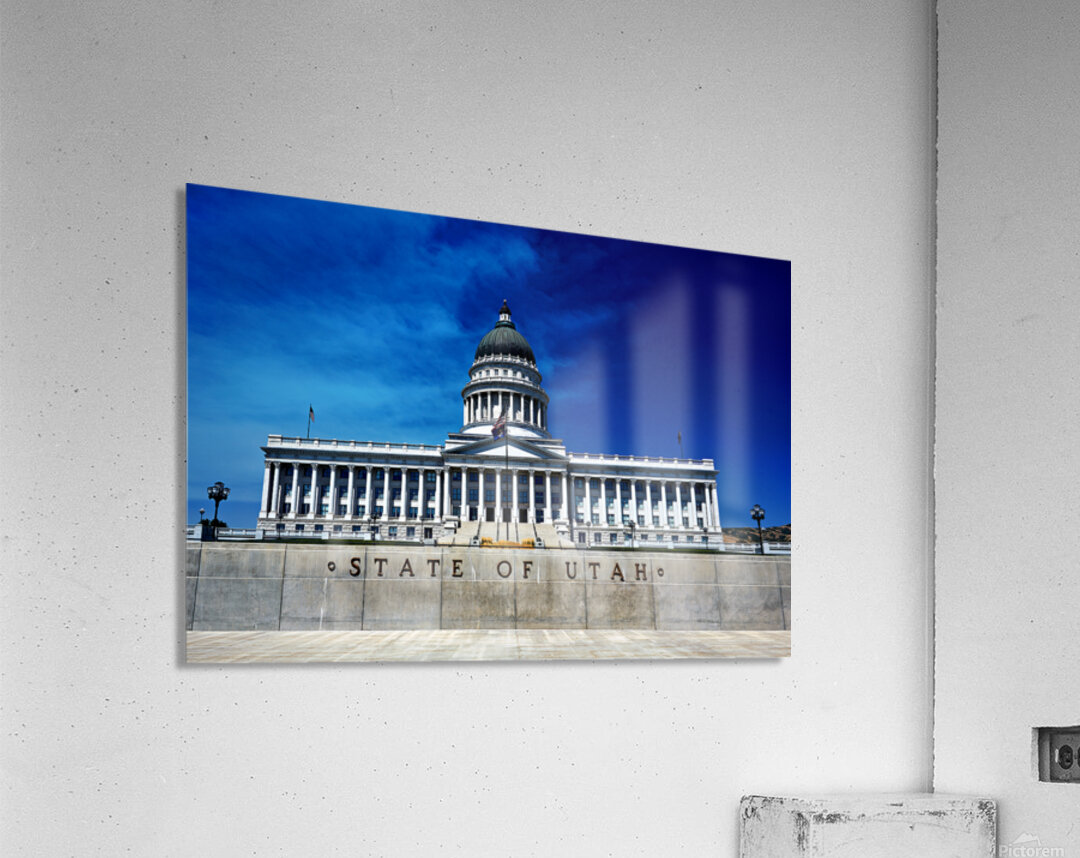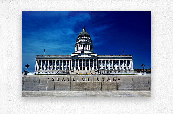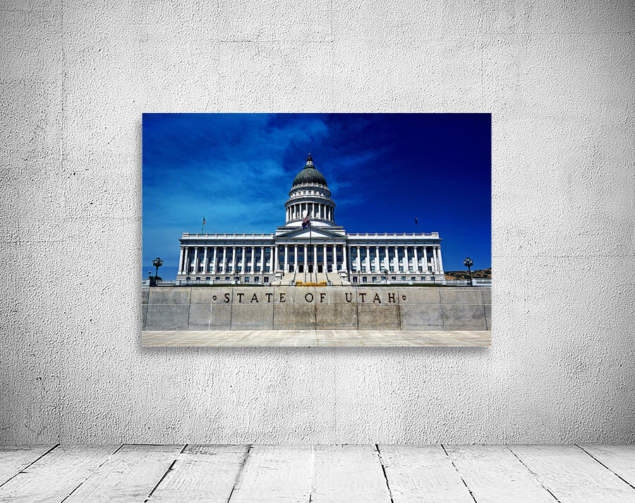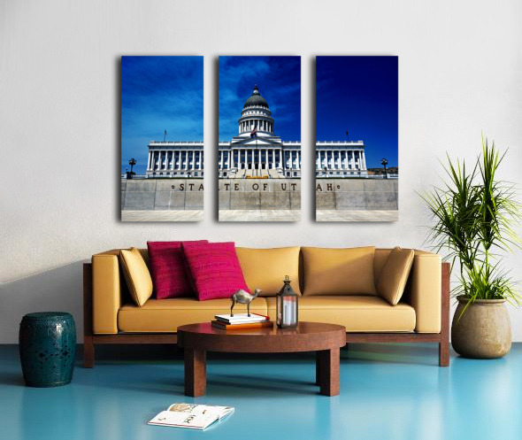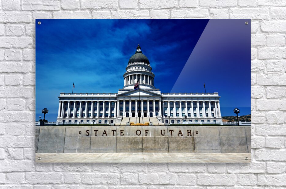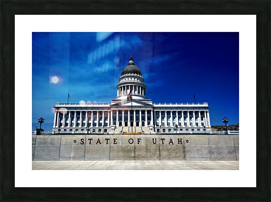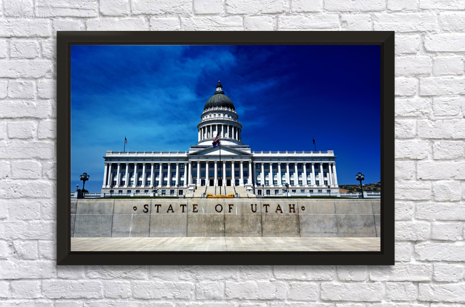 "Utah State Capitol located in Salt Lake City" in a framed print.