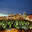 Salt Lake City shows lights from buildings and trees in a parking lot at night. The skyline reflects city life during evening hours.