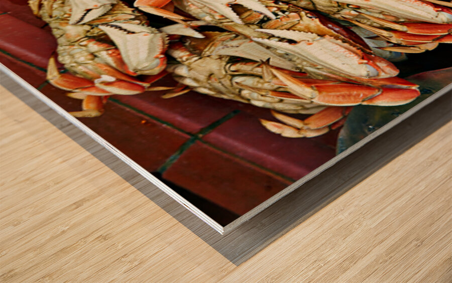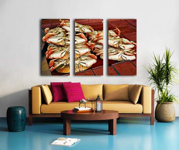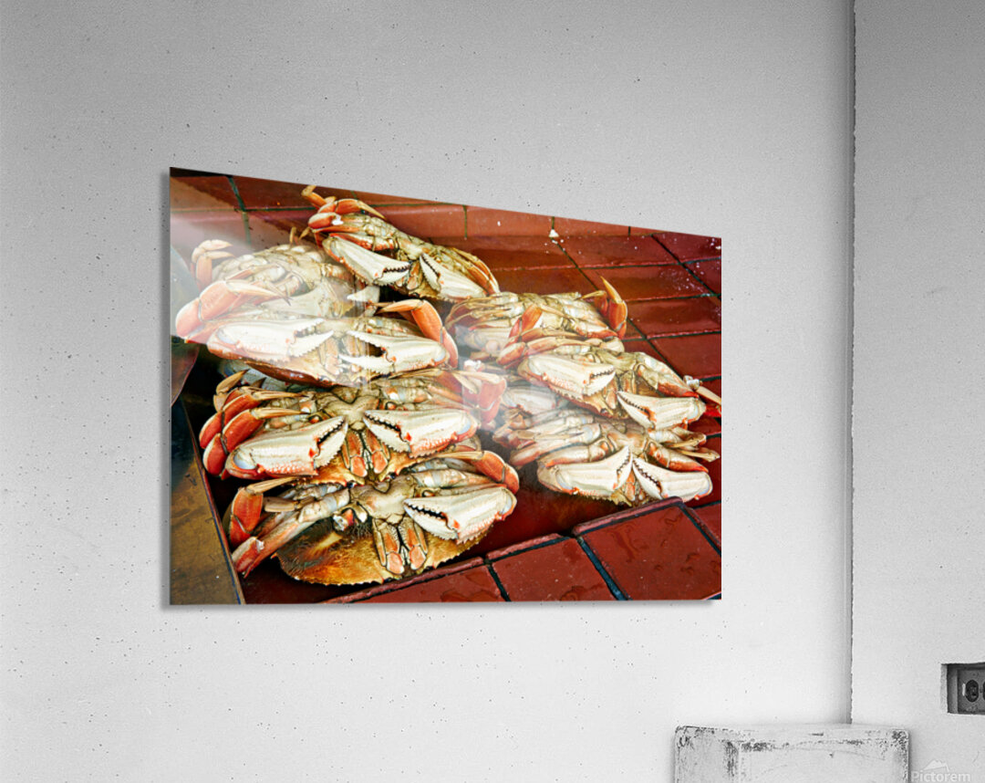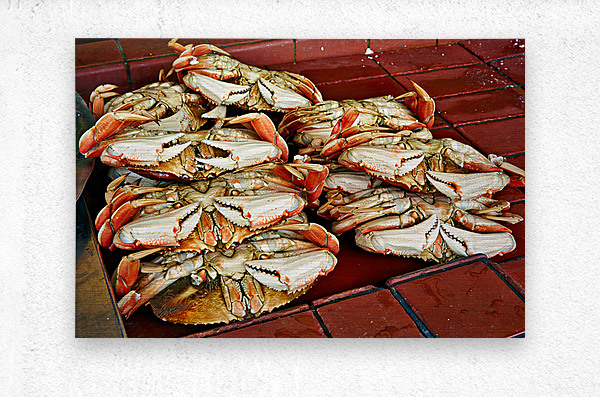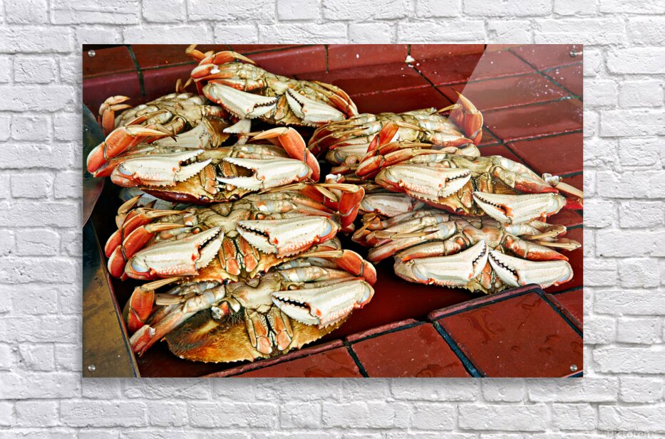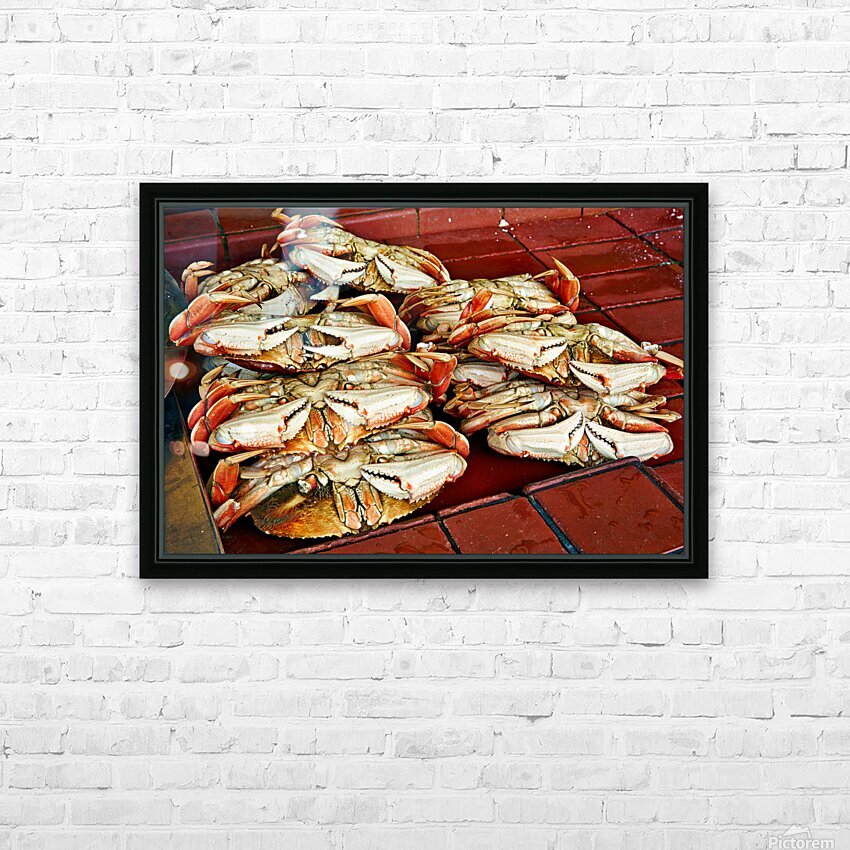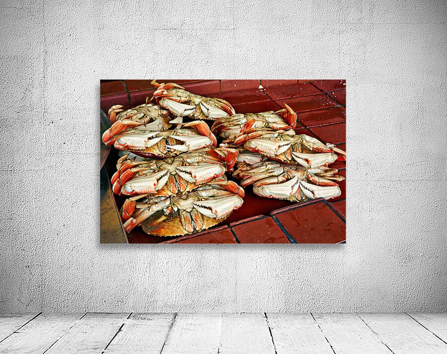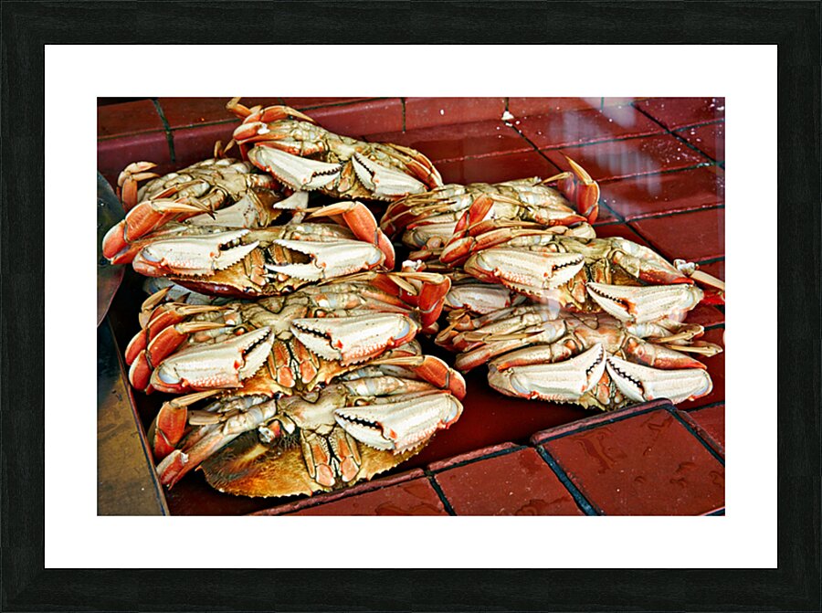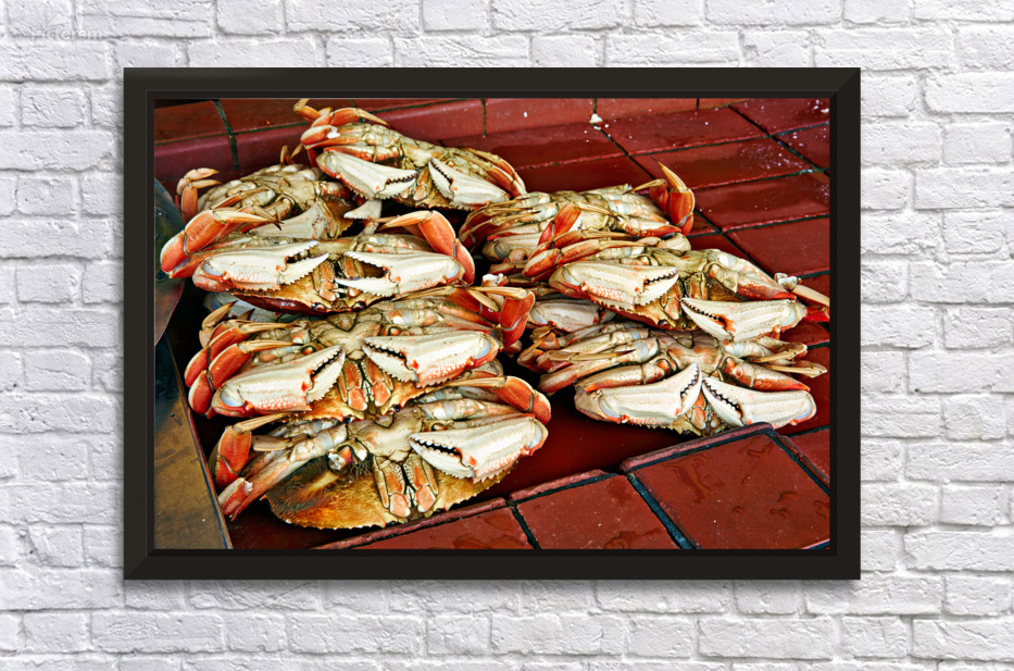 "Dungeness crabs on display at Fishermans Wharf" in a framed print.