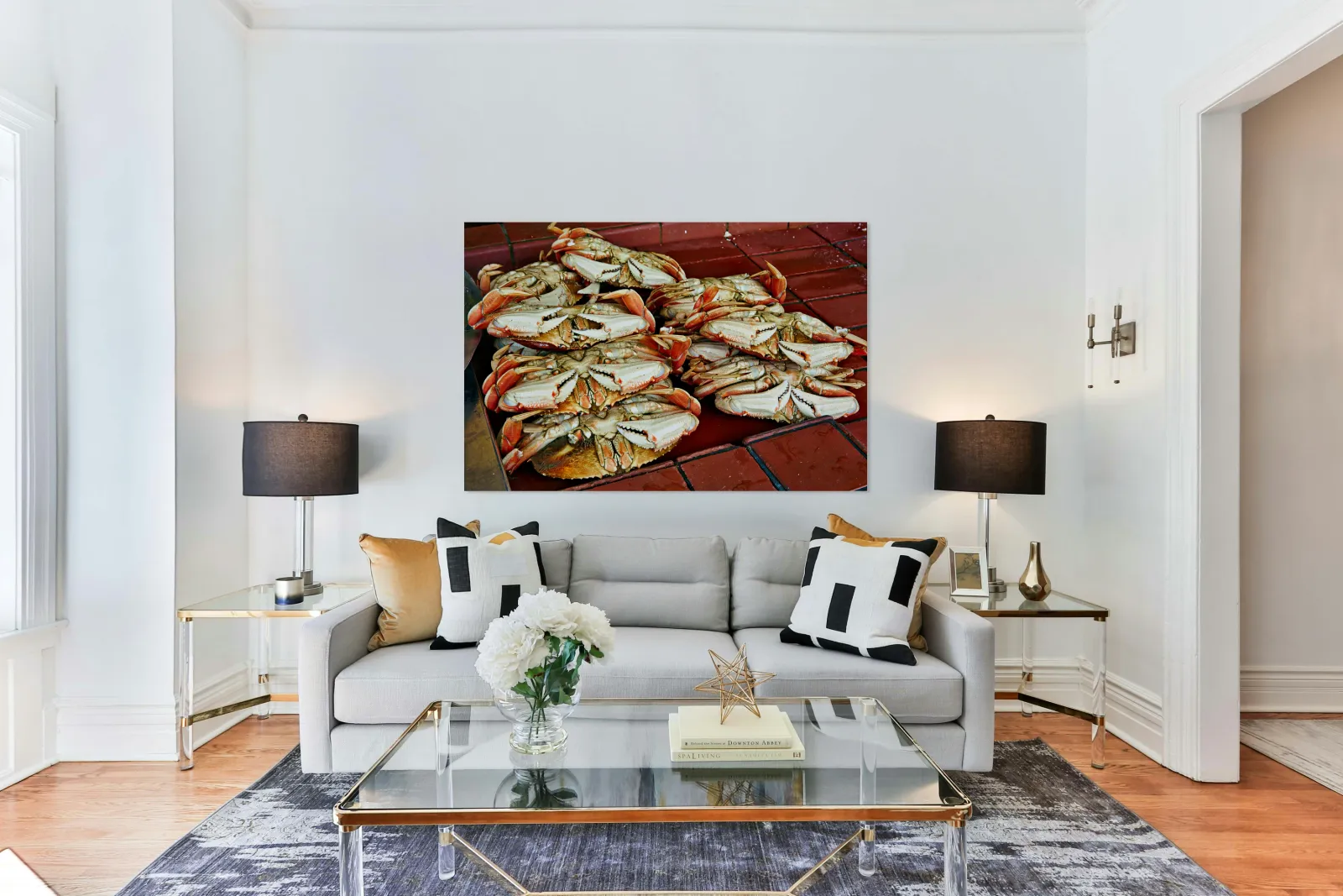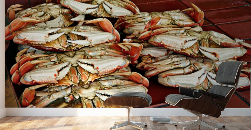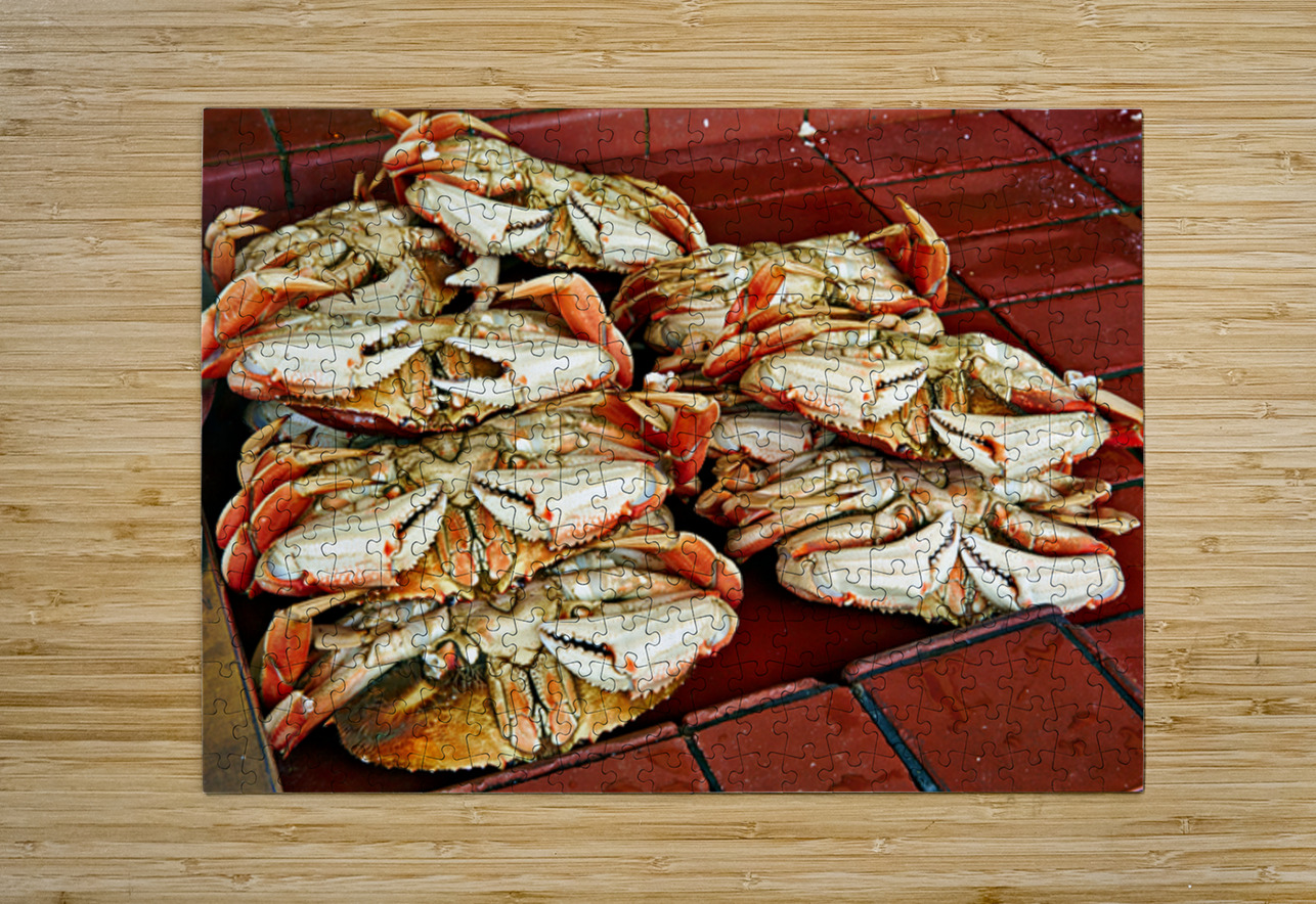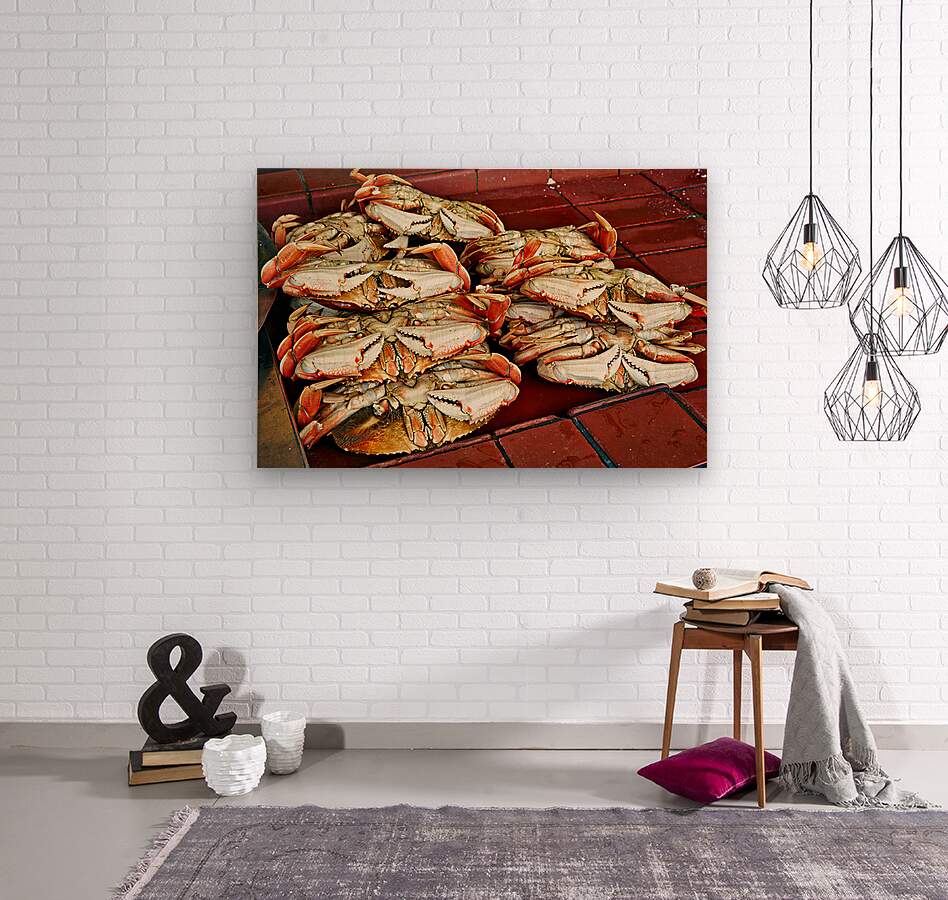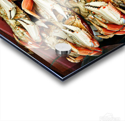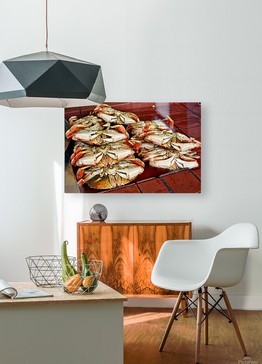 "Dungeness crabs on display at Fishermans Wharf" in a framed print.