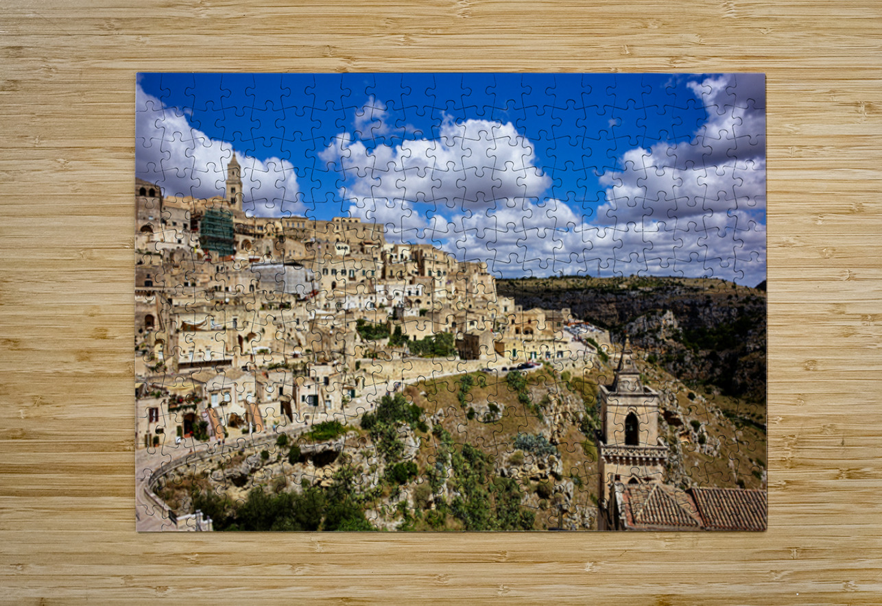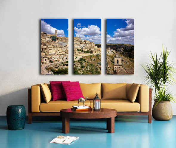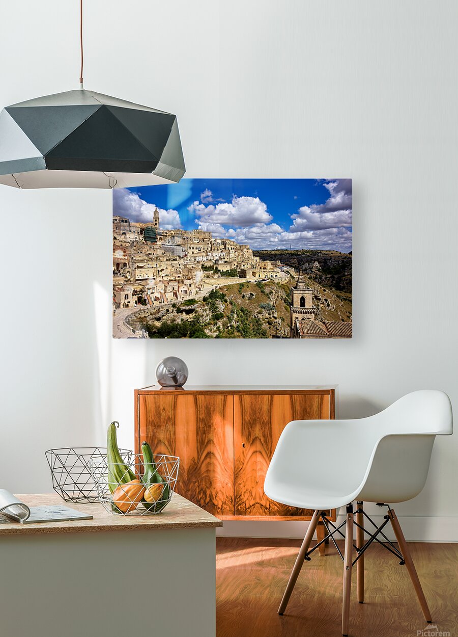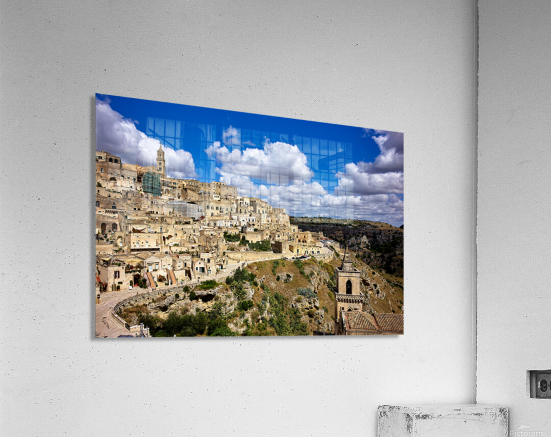 "Daytime view of Sassi di Matera Italy" in a framed print.