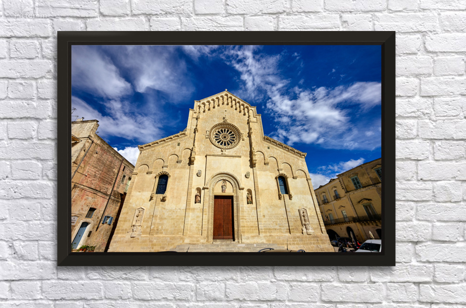 "Visit basilica pontificia cattedrale in matera italy" in a framed print.