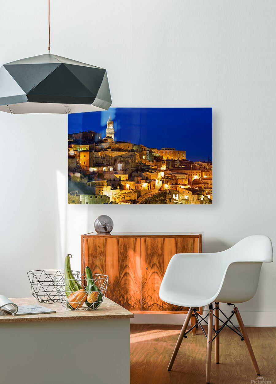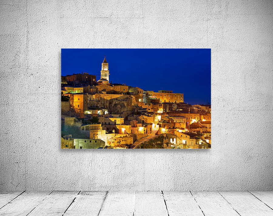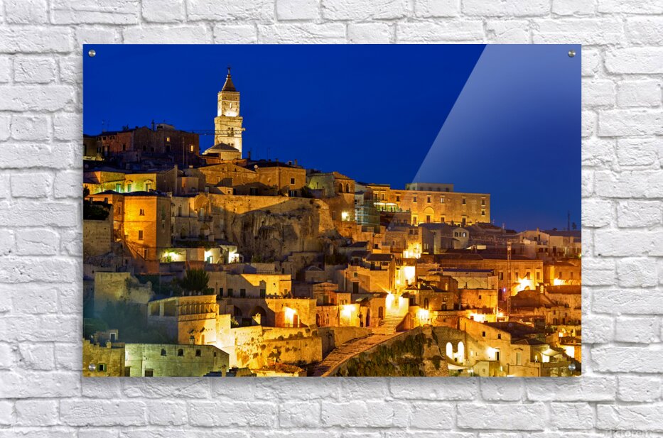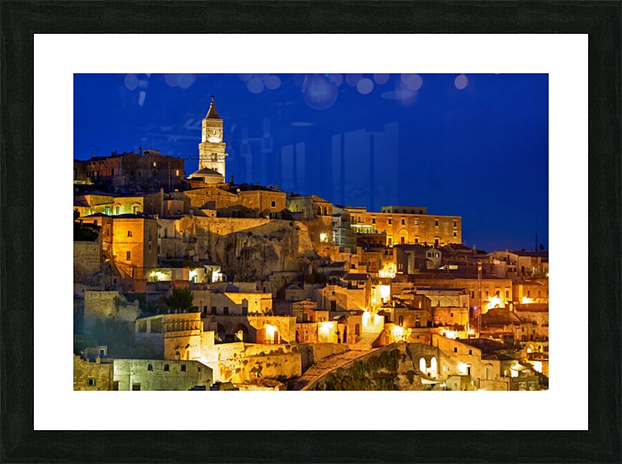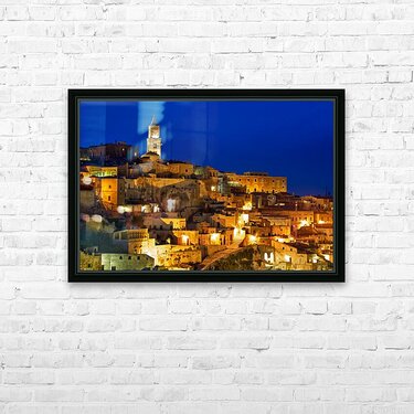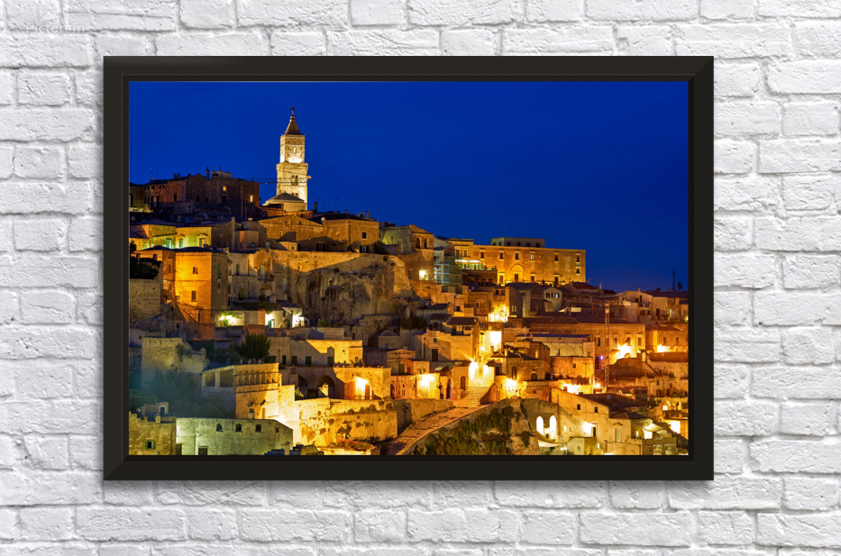 "Cityscape of Matera Basilicata at sunset" in a framed print.