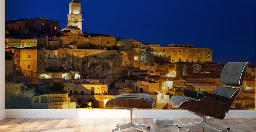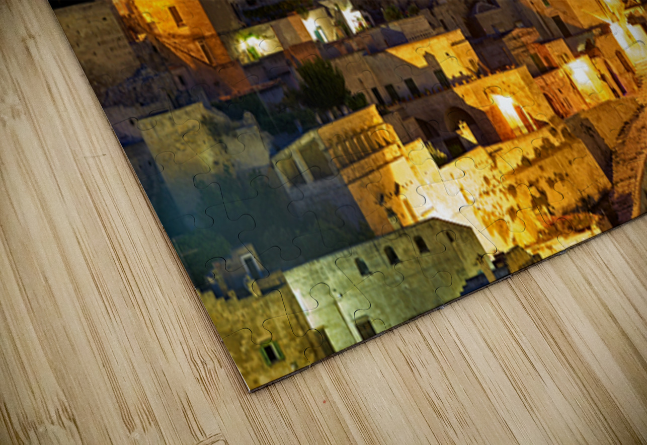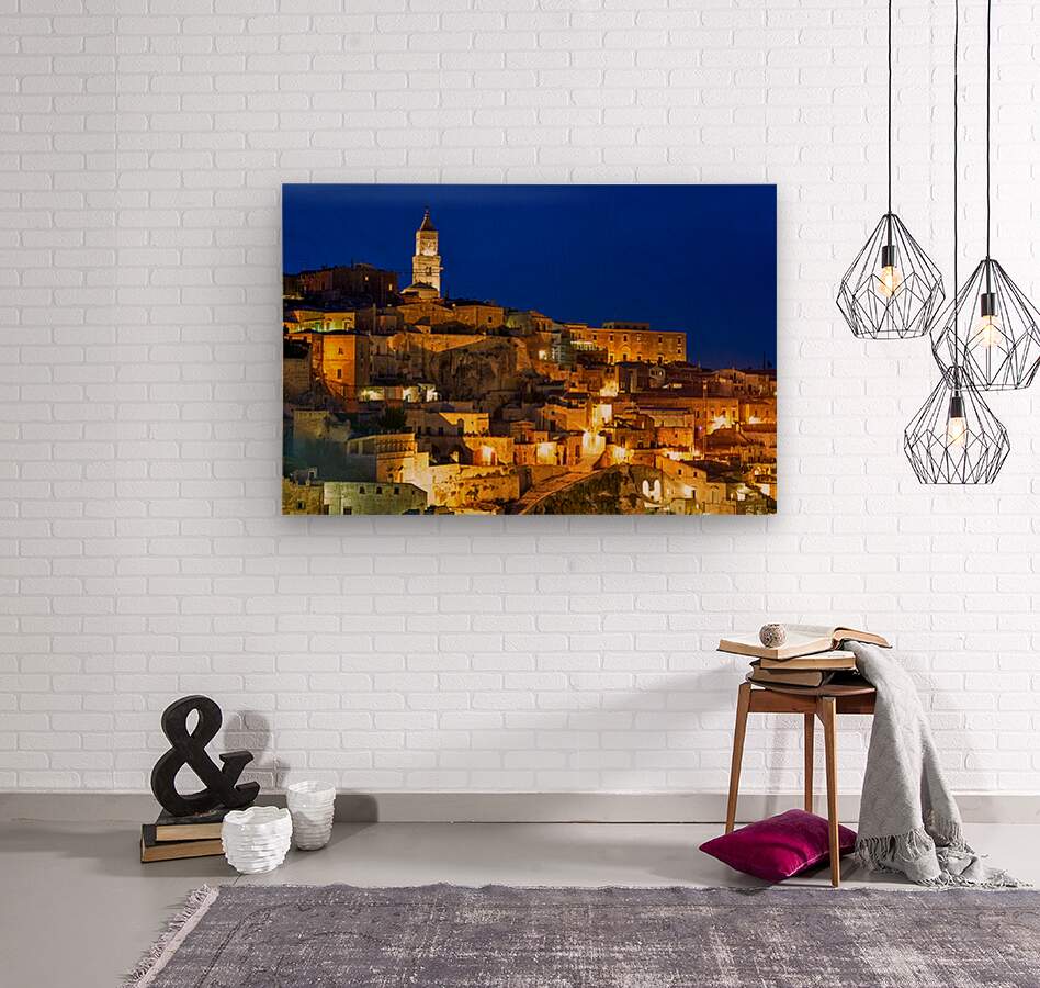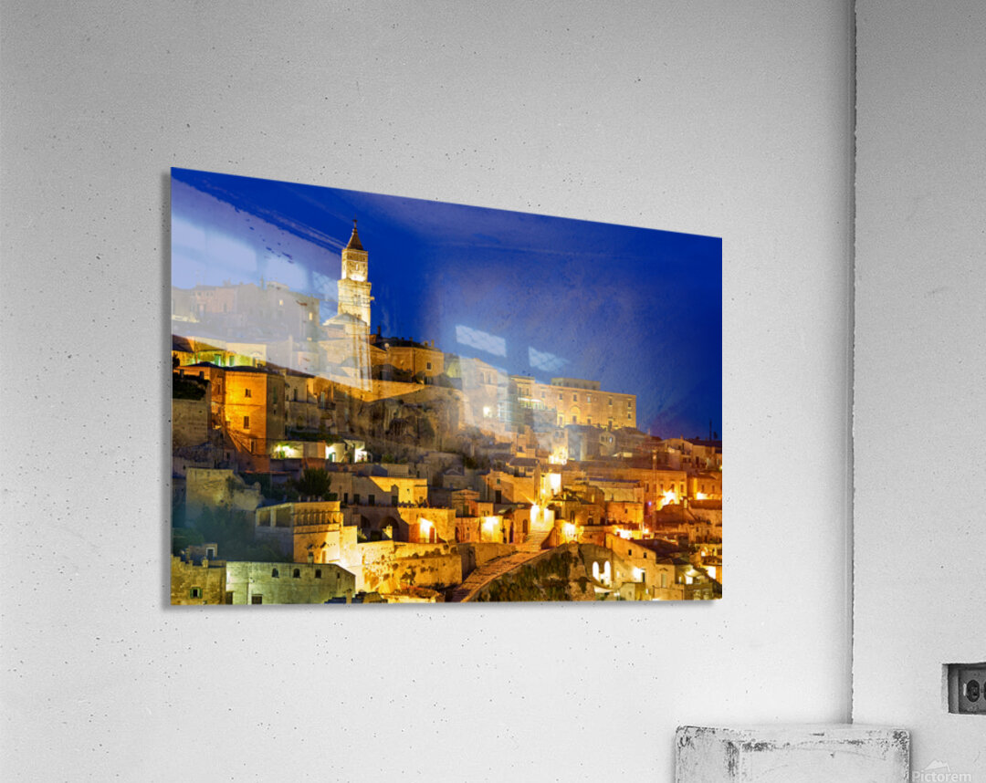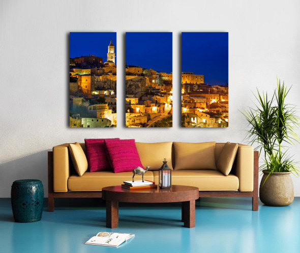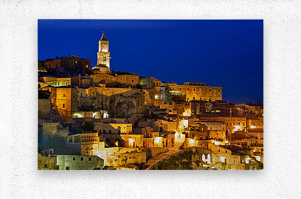 "Cityscape of Matera Basilicata at sunset" in a framed print.
