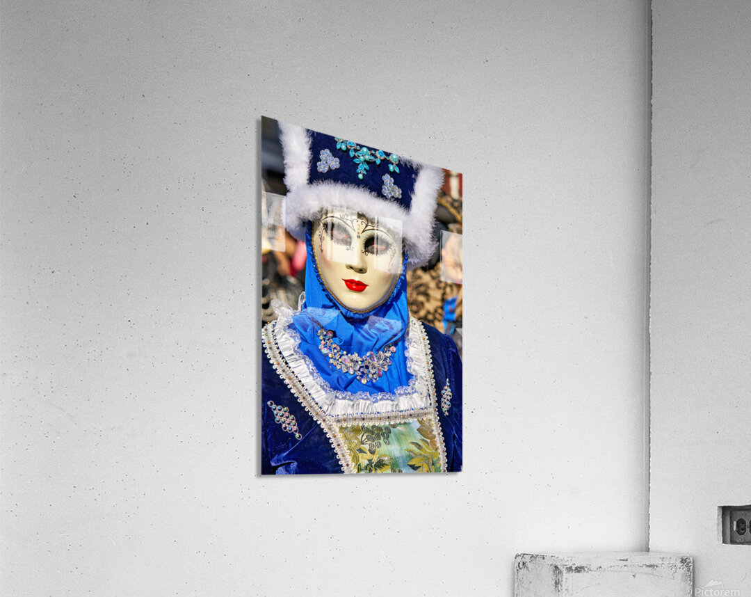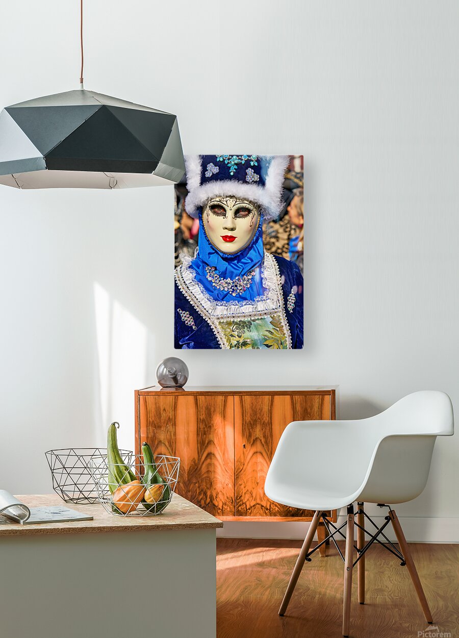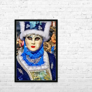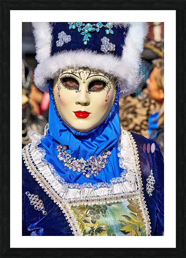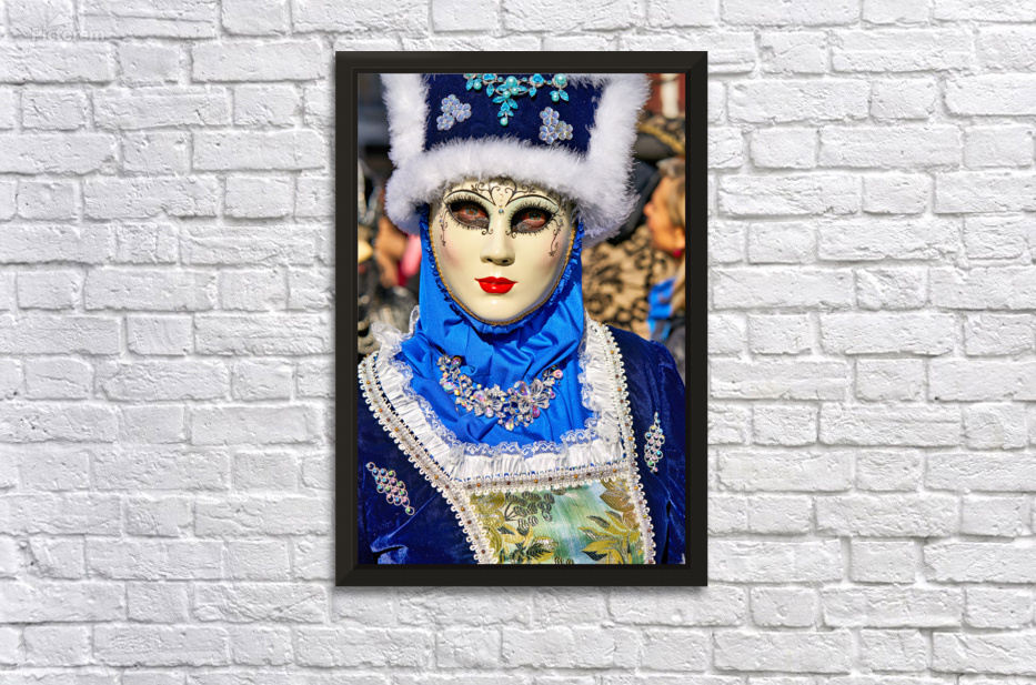 "Colorful masks at Venice Carnival in Italy" in a framed print.