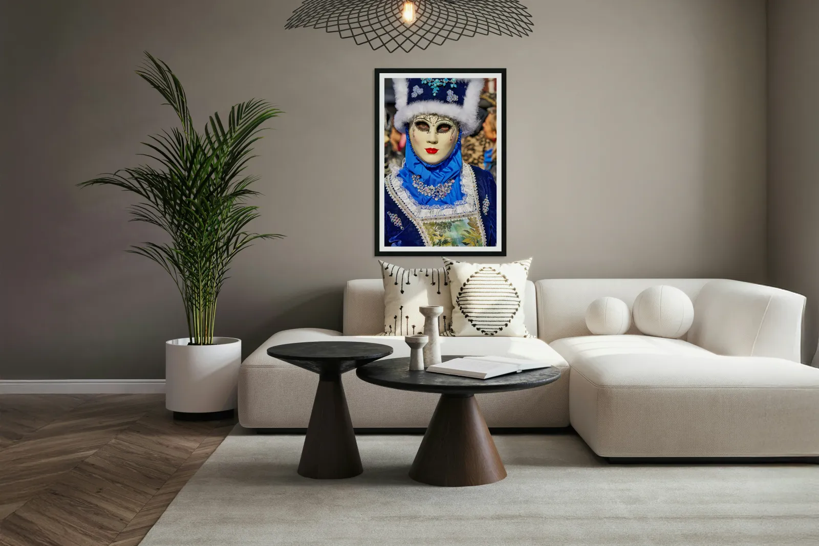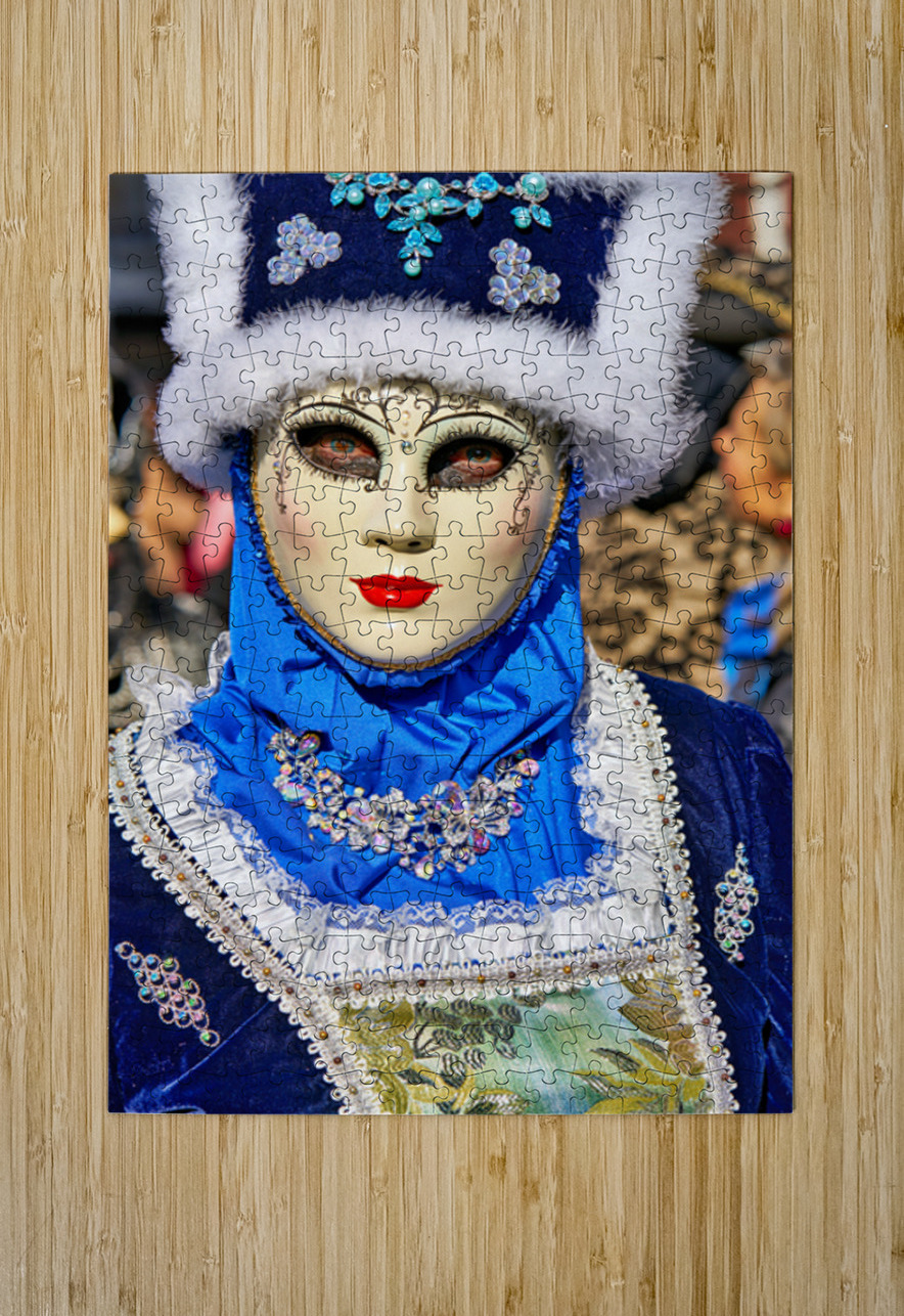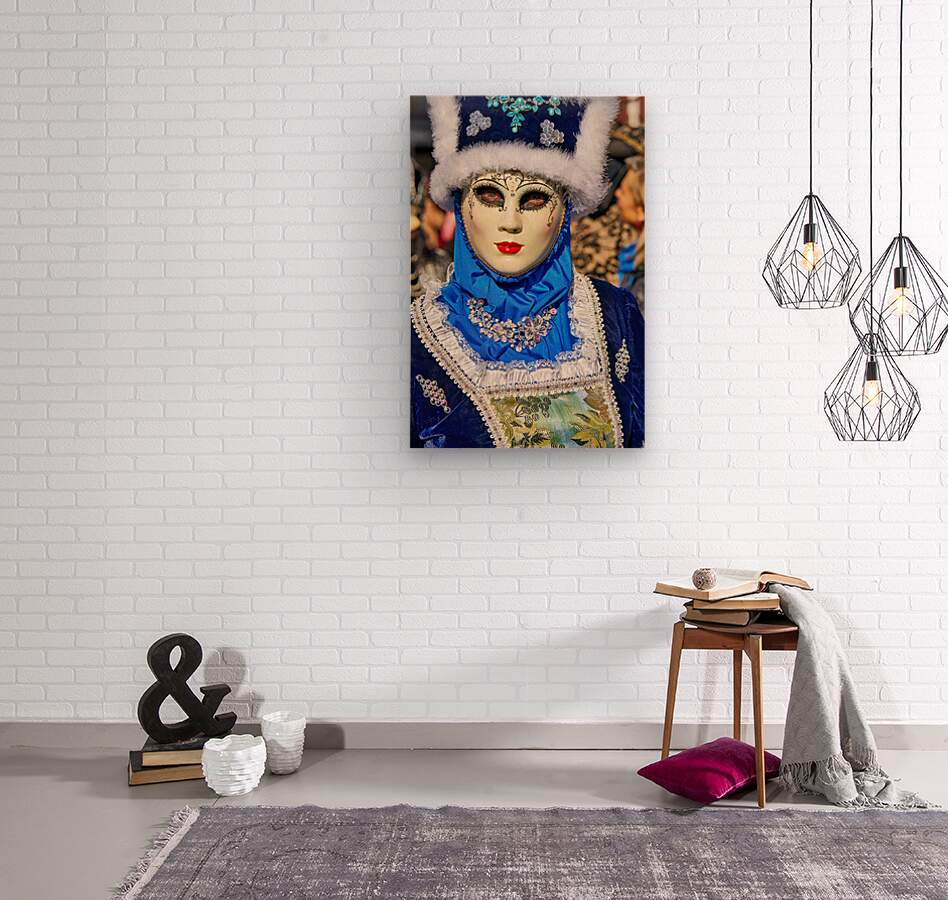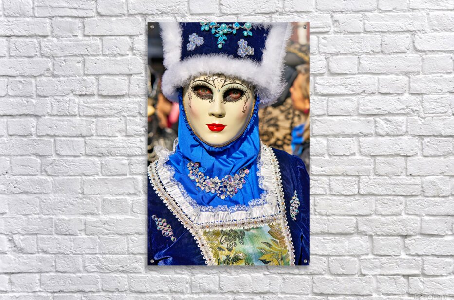 "Colorful masks at Venice Carnival in Italy" in a framed print.