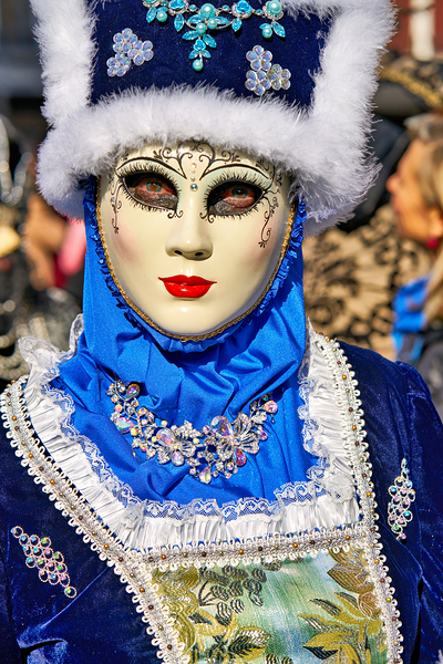 People wear ornate masks and costumes during the Venice Carnival. The event features lively gatherings and traditional performances.
