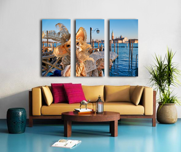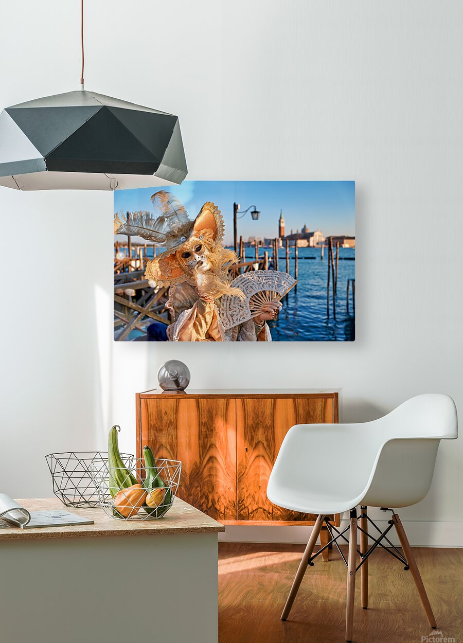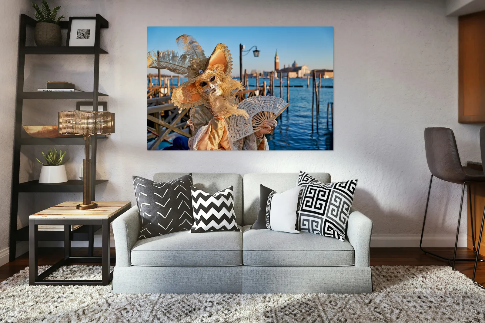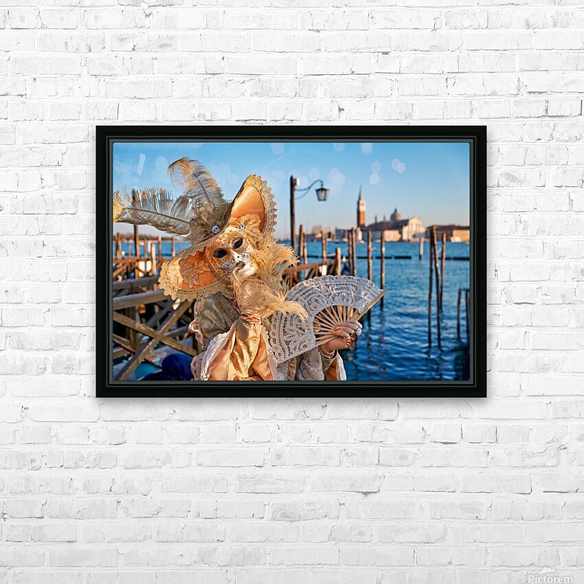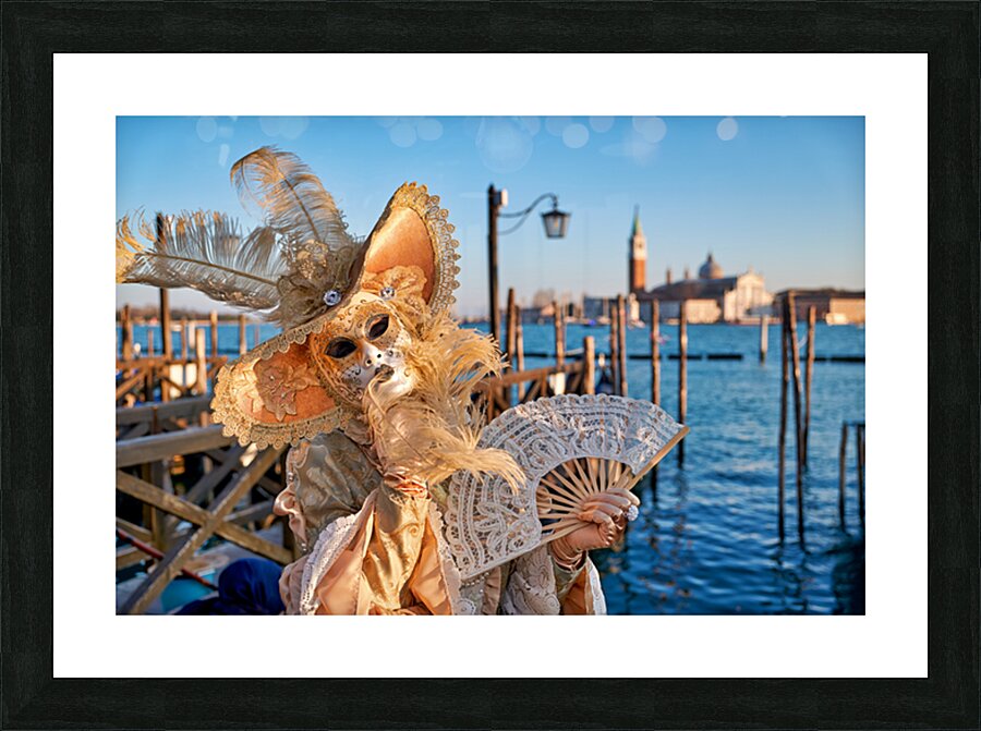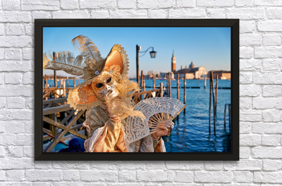 "Venice Carnival in Italy showcases masks and costumes" in a framed print.