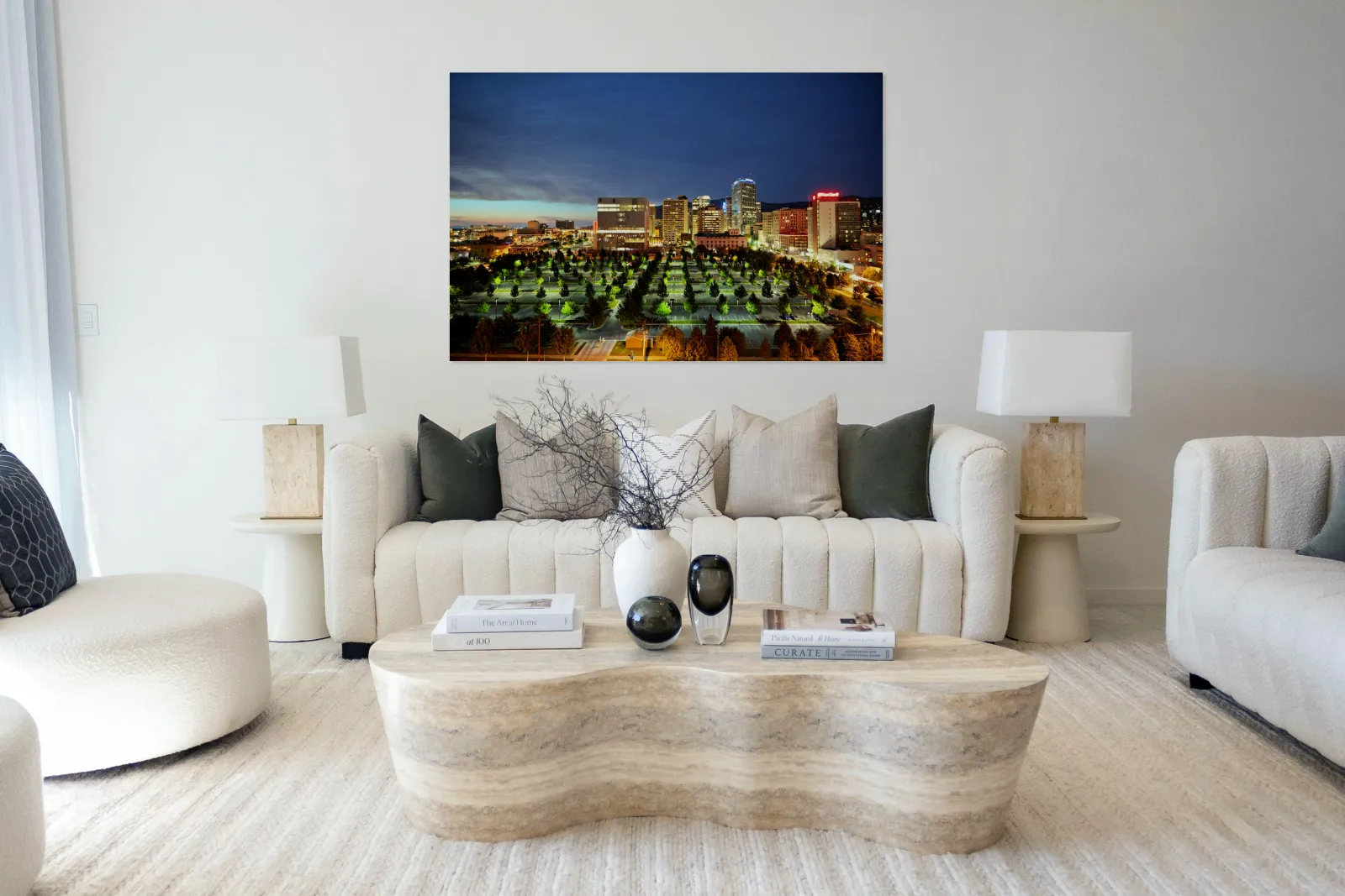Imprimé jusqu’au bord et prêt à être accroché, avec un cadre flottant à l’arrière.