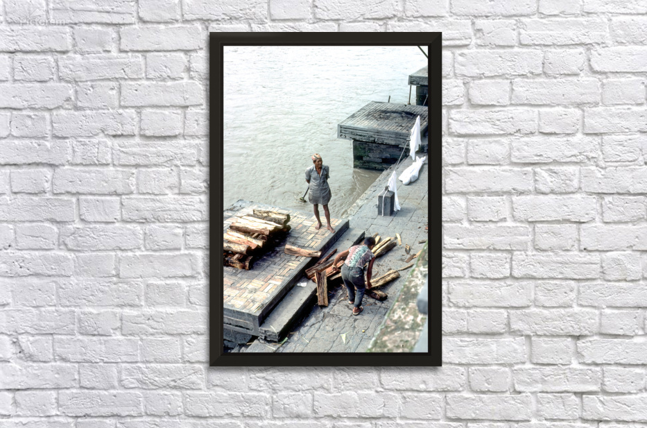 "Nepal. Kathmandu. Cremation in Pashupatinath" dans une impression encadrée.