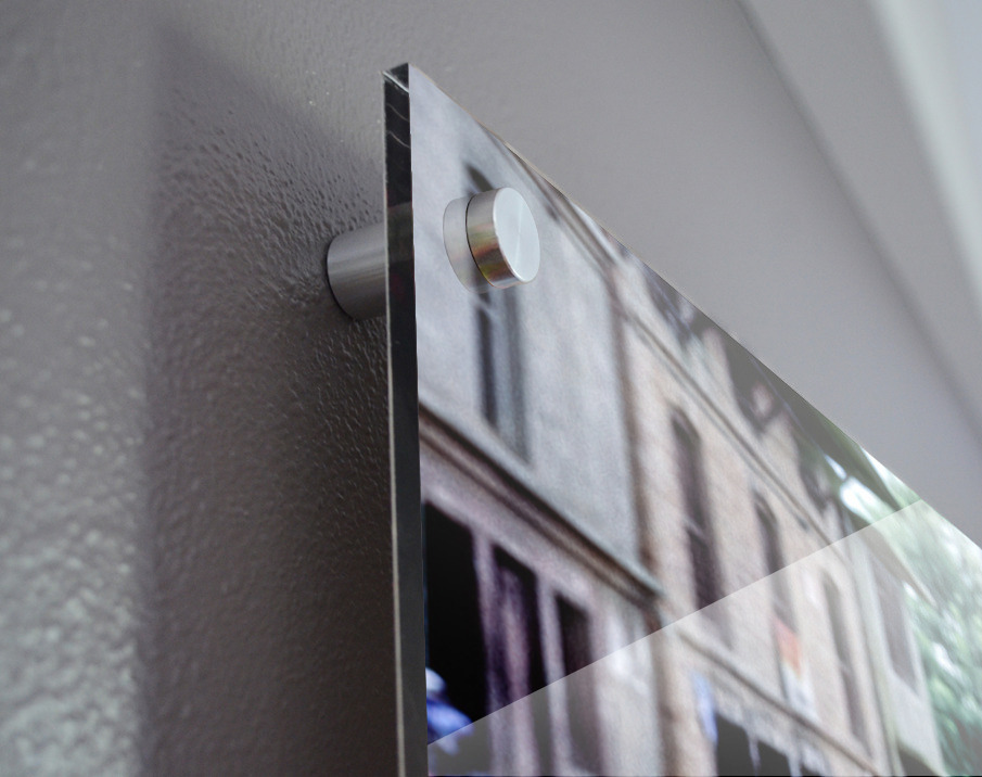 Impression sur acrylique avec entretoises ( cylindres métalliques )