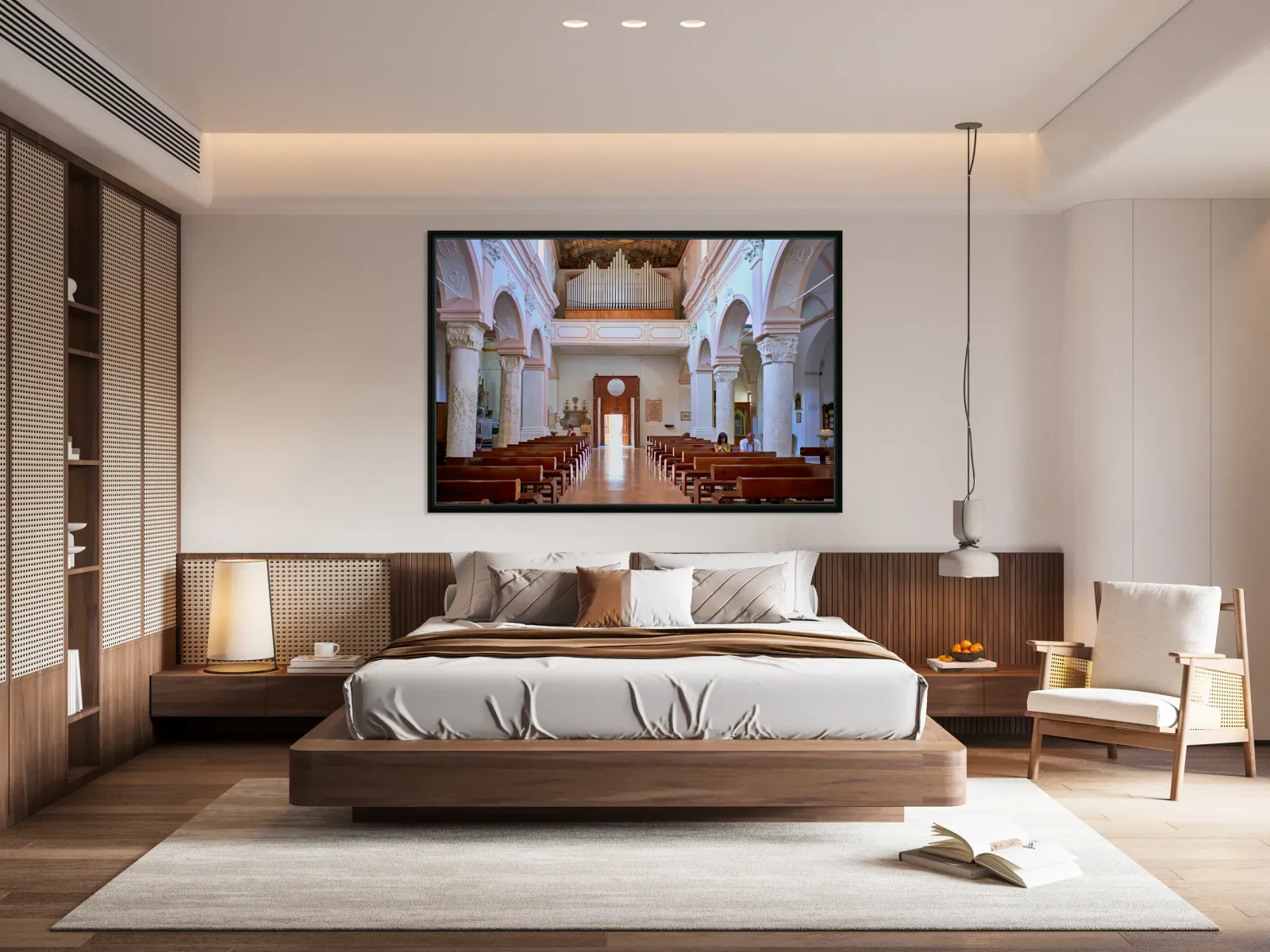 Imprimé jusqu’au bord et prêt à être accroché, avec un cadre flottant à l’arrière.