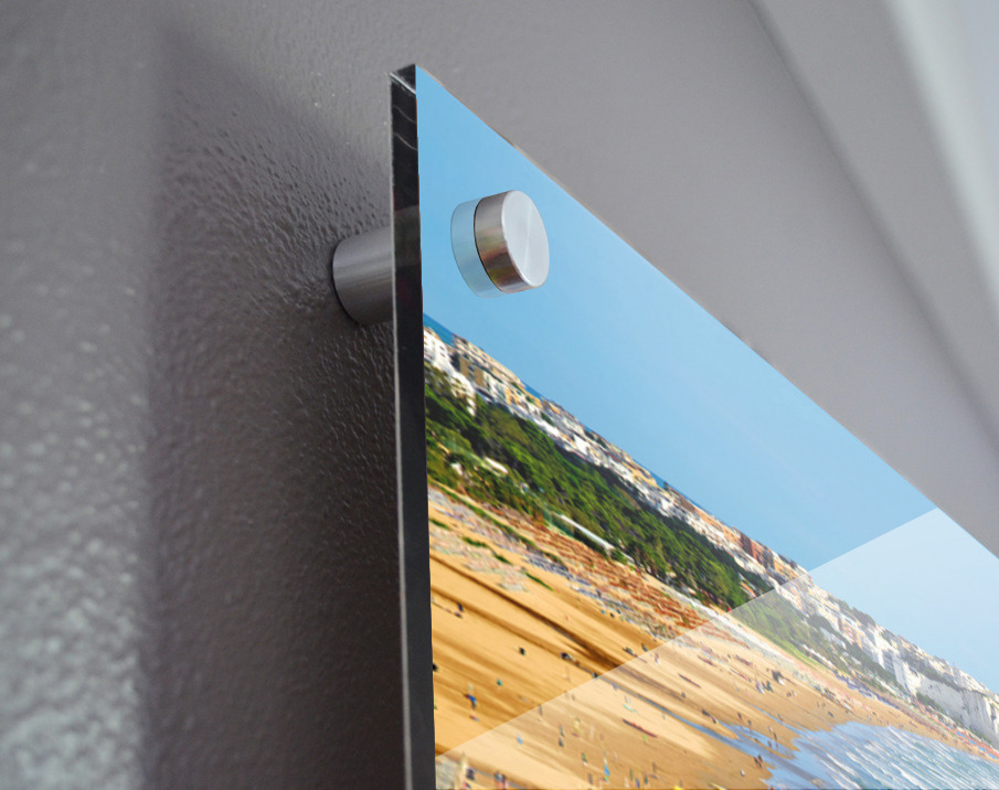 Impression sur acrylique avec entretoises ( cylindres métalliques )