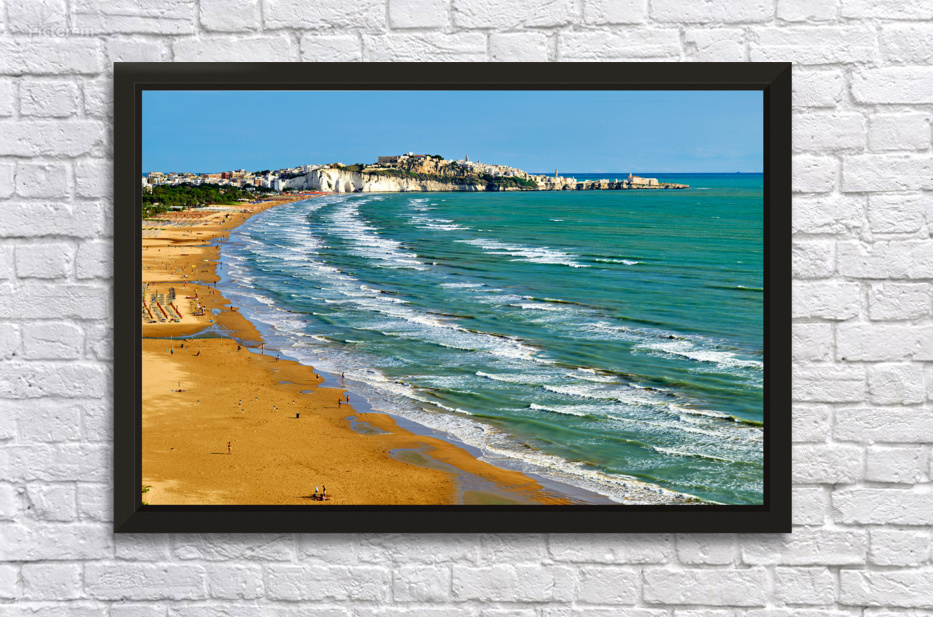 "Vieste Gargano. Apulia Puglia Italy. The beach" dans une impression encadrée.