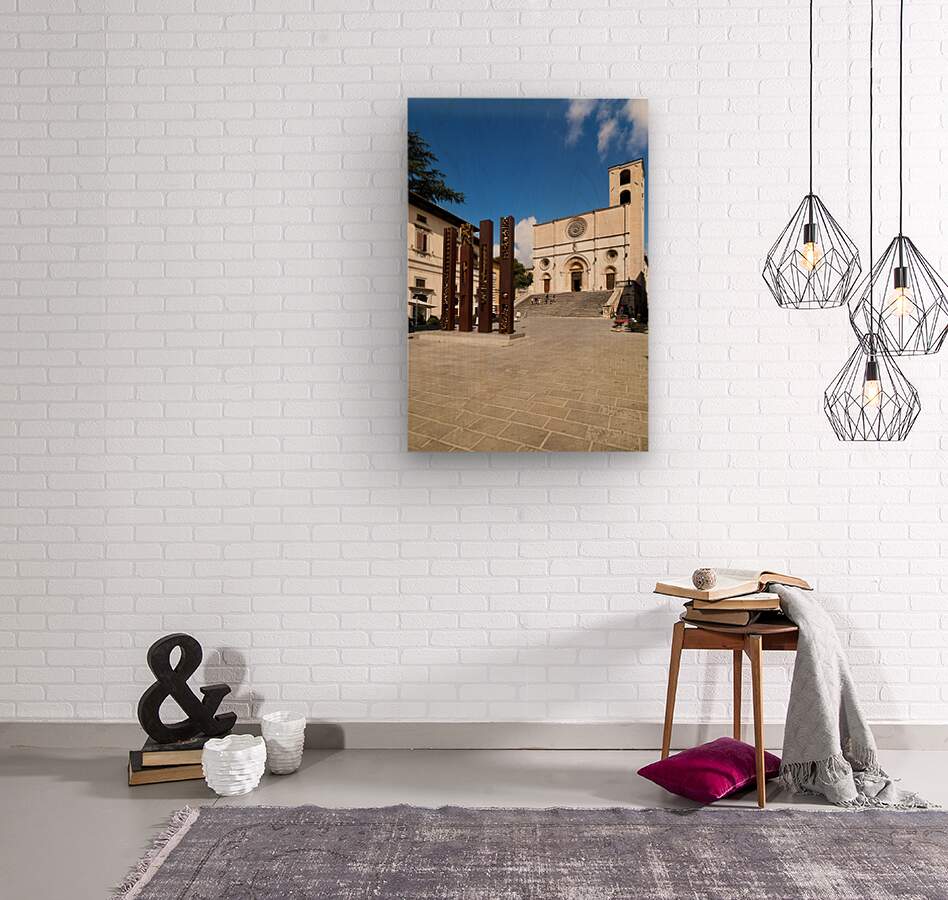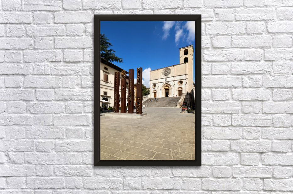 Todi Umbria Italy. Concattedrale della Santissima Annunziata. Cathedral. Piazza del Popolo. The statue Quattro Stele by Arnaldo Pomodoro
