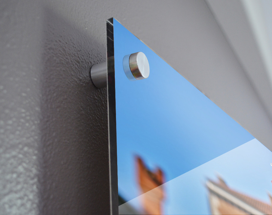 Impression sur acrylique avec entretoises ( cylindres métalliques )