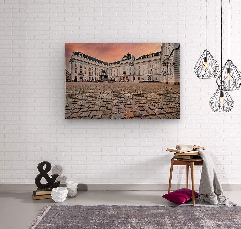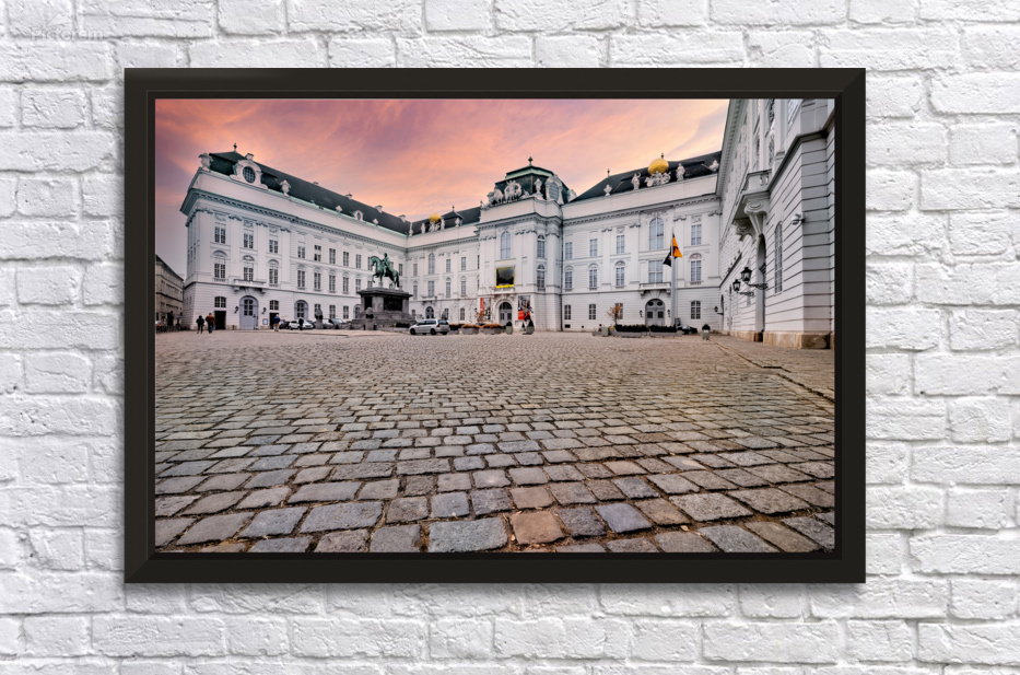 Josefsplatz in Vienna Austria featuring the equestrian statue of Emperor Joseph II and the grand Hofburg Palace under a vibrant sky.