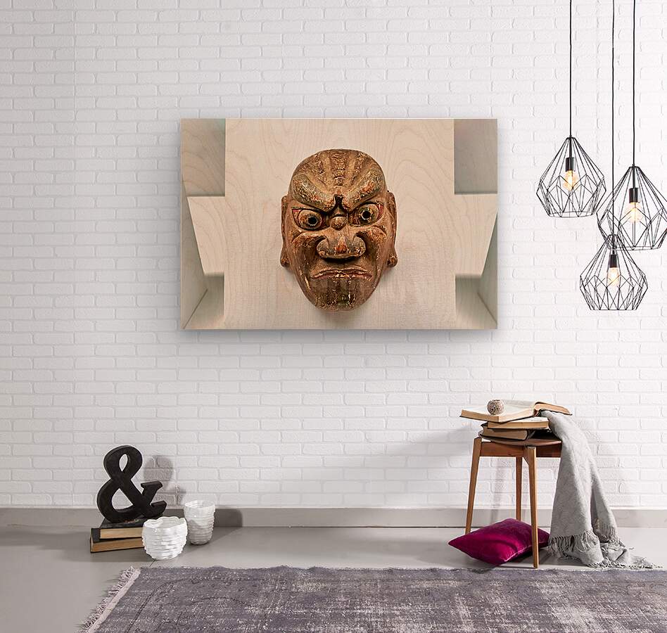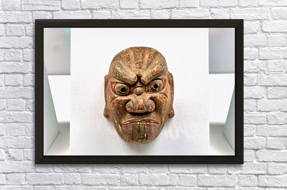 A traditional Japanese mask is showcased in the Honkan Gallery at Tokyo National Museum highlighting the rich cultural heritage of Japan.