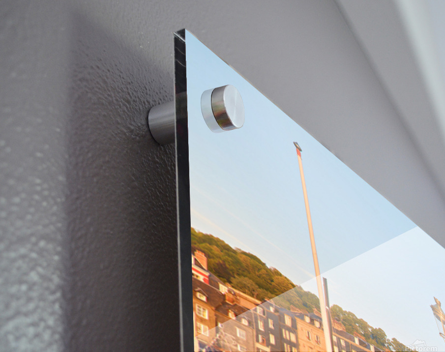 Impression sur acrylique avec entretoises ( cylindres métalliques )