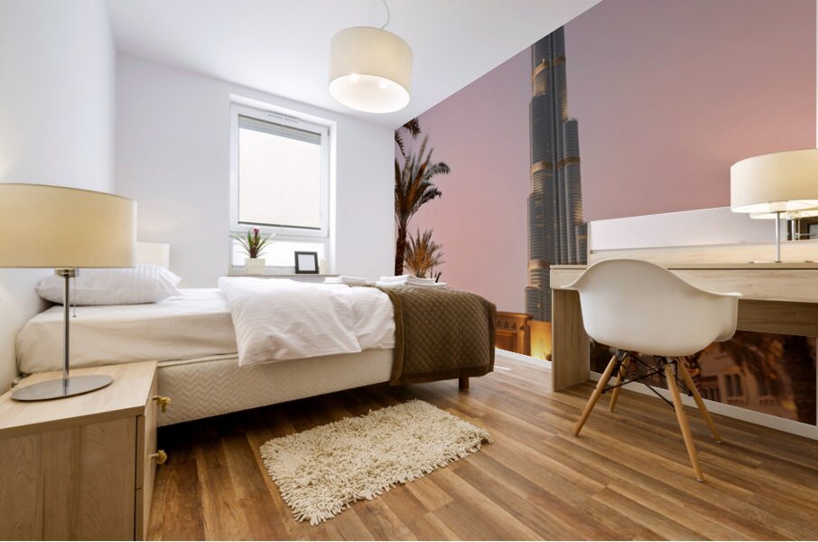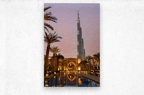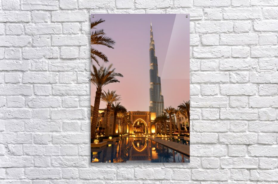SUR CETTE OEUVRE: BURJ KHALIFA STANDS TALL AT DUSK IN DUBAI