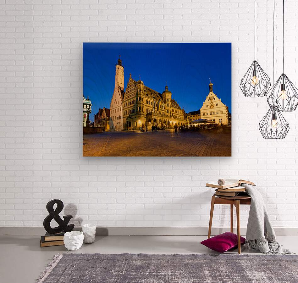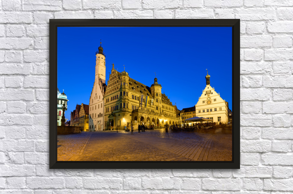 Rothenburg ob der Tauber shows the town hall and market square at sunset. The sky shifts to night as lights illuminate the square.