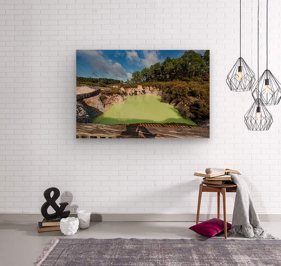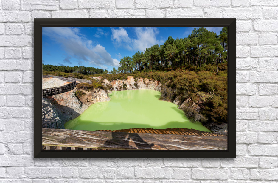 Devils Bath shows its bright green water in Waiotapu Thermal Wonderland of Rotorua. Visitors can see the unique landscape and geothermal features.