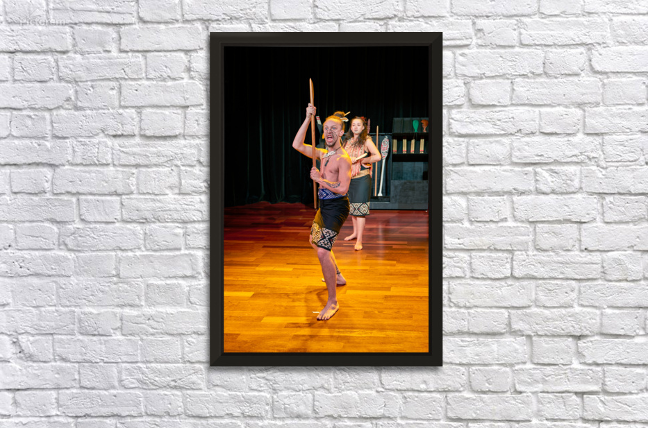 Two performers present a Maori haka dance in Auckland. The dancers wear traditional clothing and demonstrate cultural expressions.