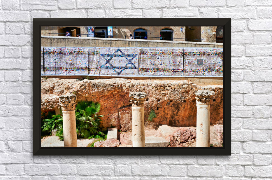 "Roman columns in the Jewish quarter of Jerusalem Israel" dans une impression encadrée.