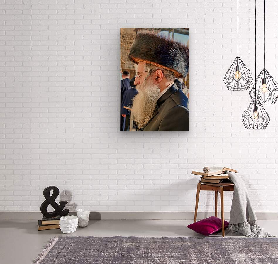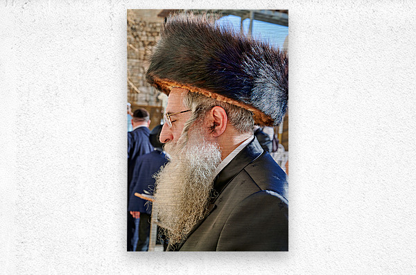 Orthodox Jews stand and pray at the Wailing Wall in Jerusalem. The sun shines on the stone as they engage in their rituals.