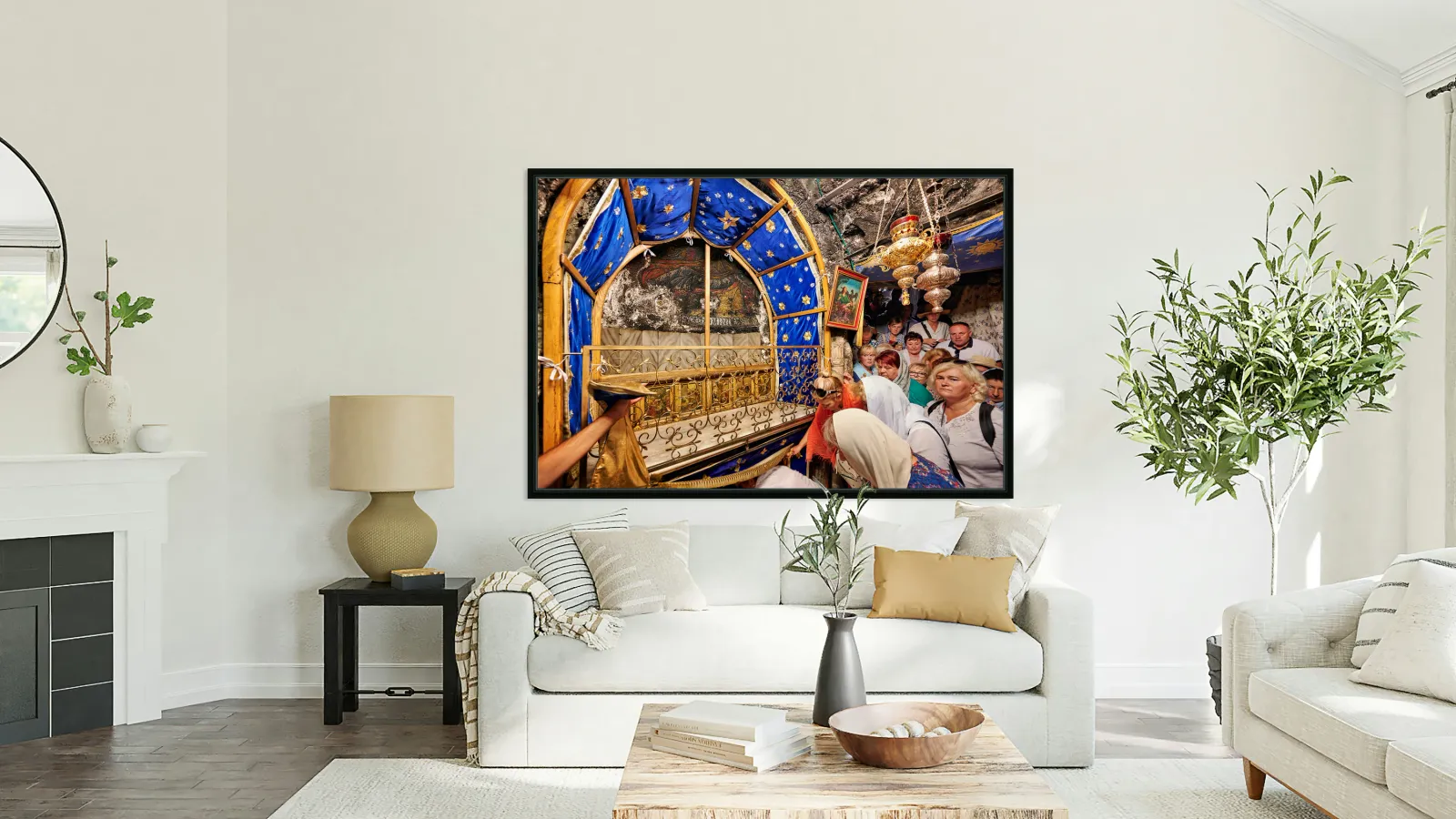 Imprimé jusqu’au bord et prêt à être accroché, avec un cadre flottant à l’arrière.