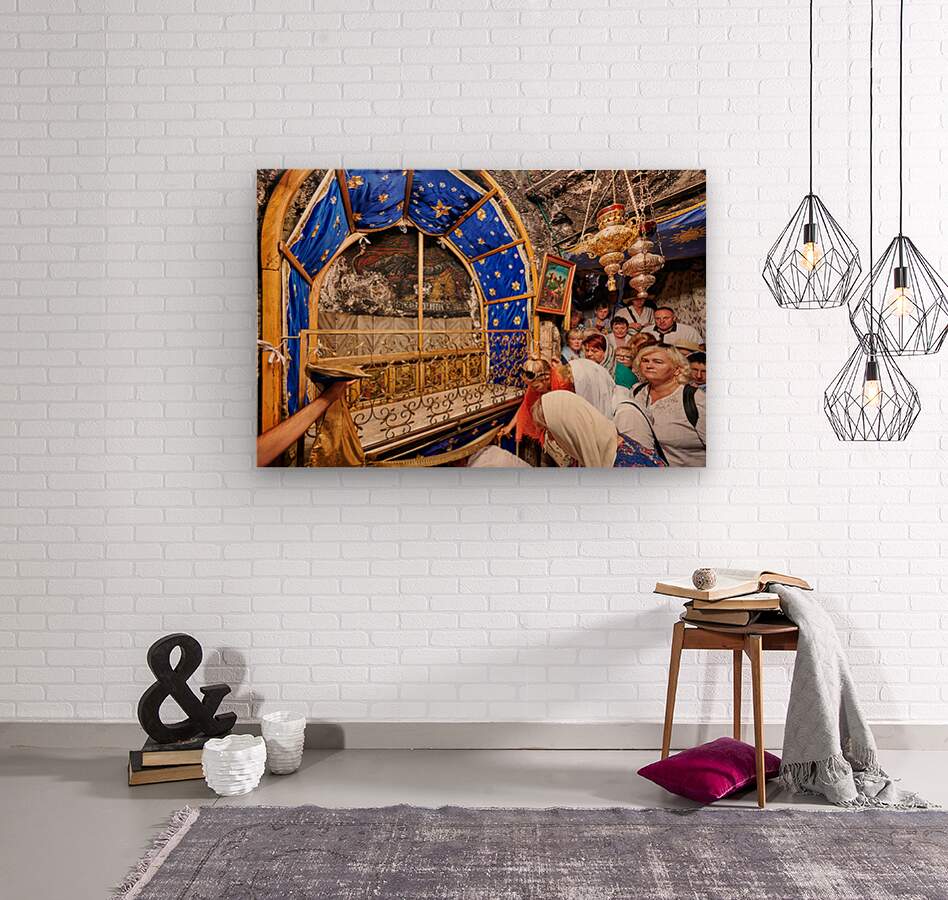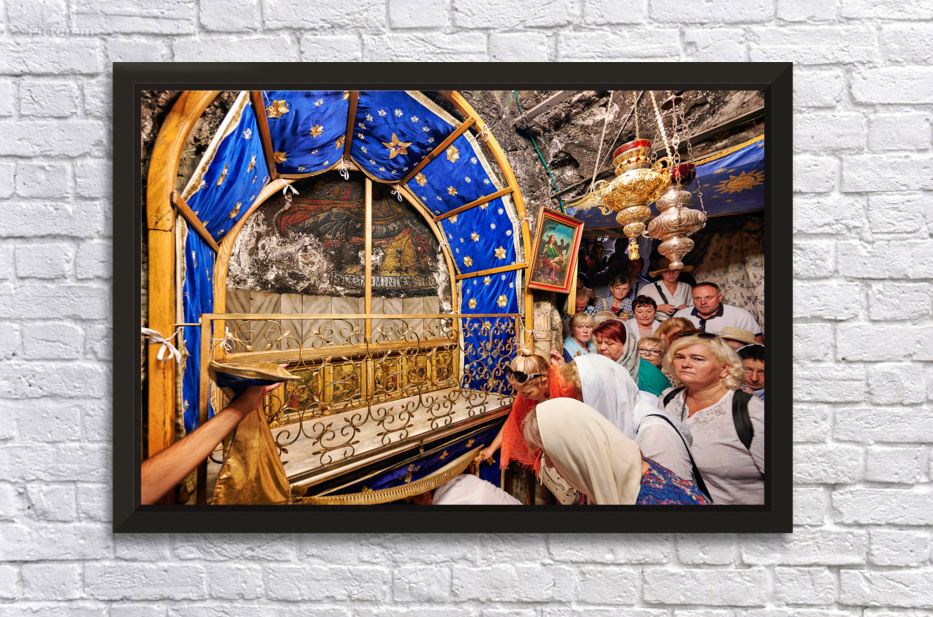 People gather inside the grotto of nativity in Bethlehem Jerusalem to see the birthplace of Jesus. Many visitors take part in this event.