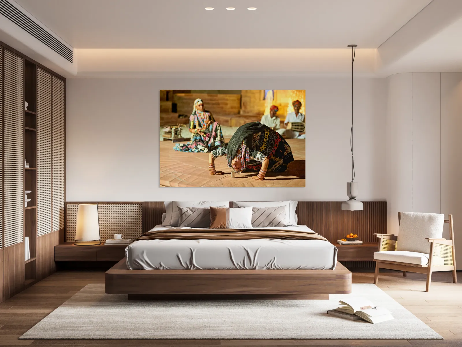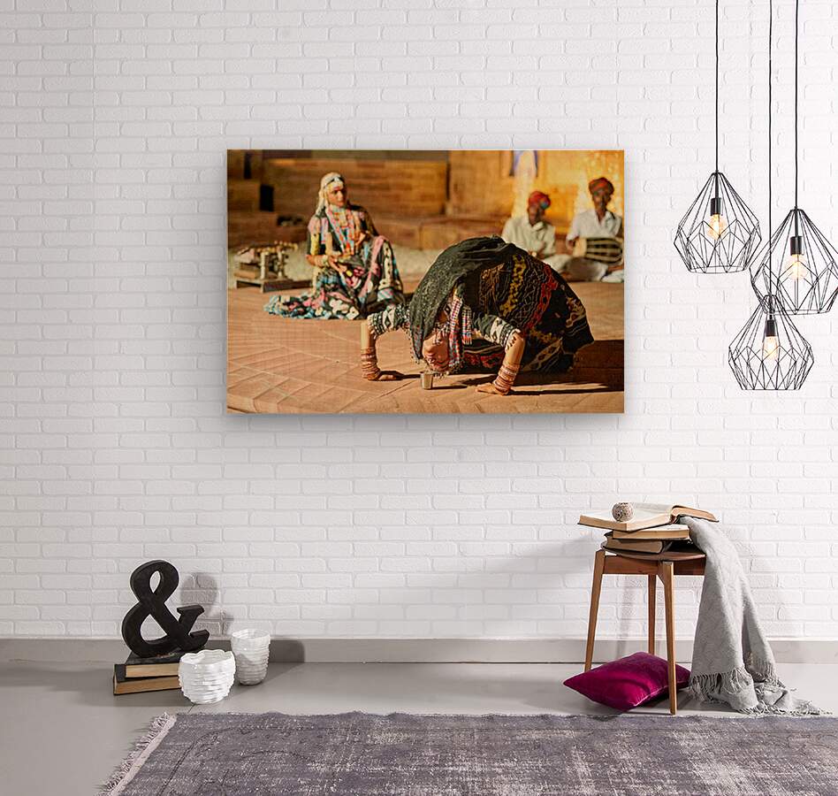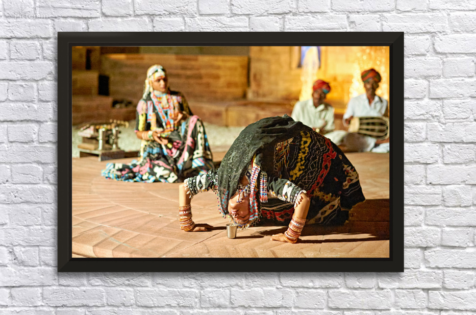 Dancers perform traditional art in Khimsar Rajasthan. The scene shows a dancer bowing with respect and energy in front of a gathering.