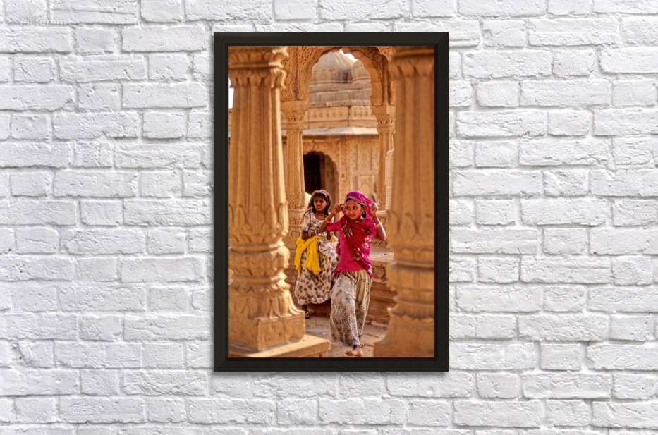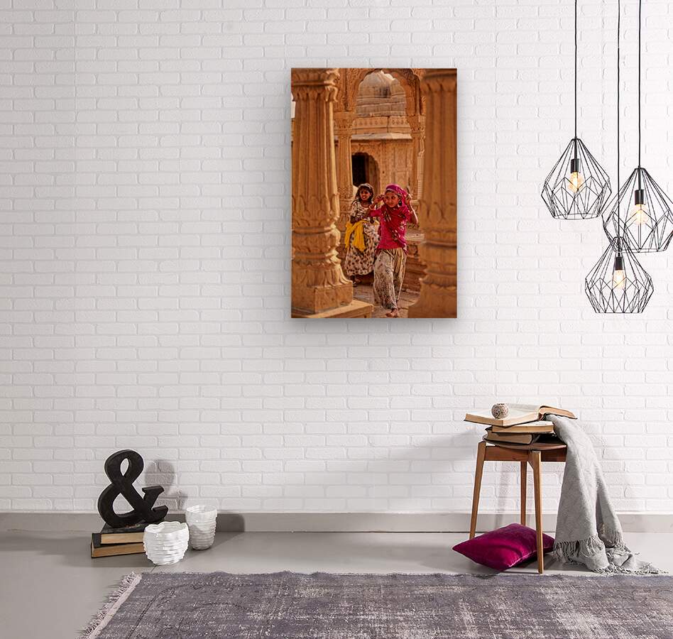 Two girls explore the historic architecture in Jaisalmer Rajasthan while enjoying their time together in the evening sun.