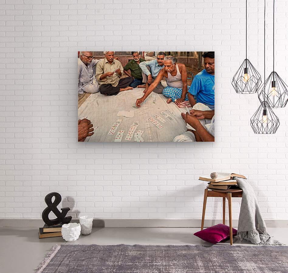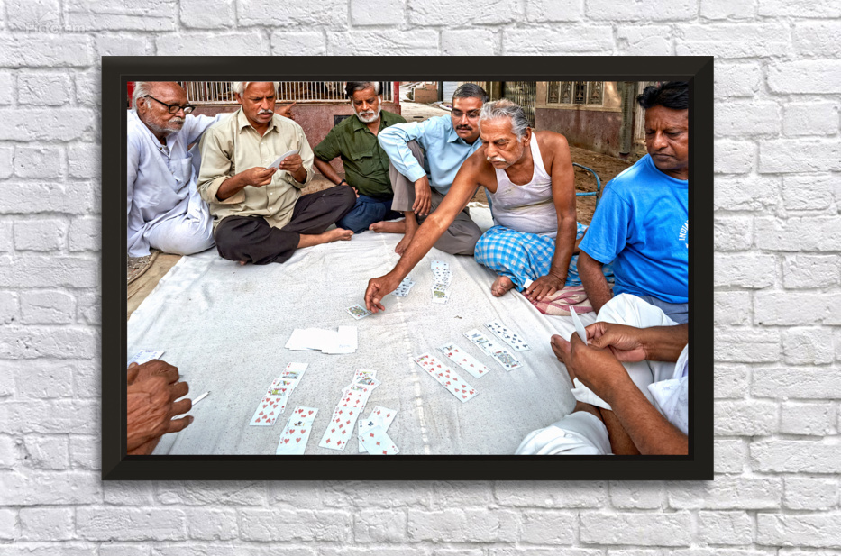 Group of men gather on the street in Bikaner Rajasthan to play cards and enjoy their time together in the afternoon.