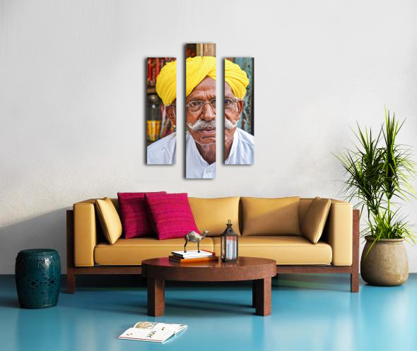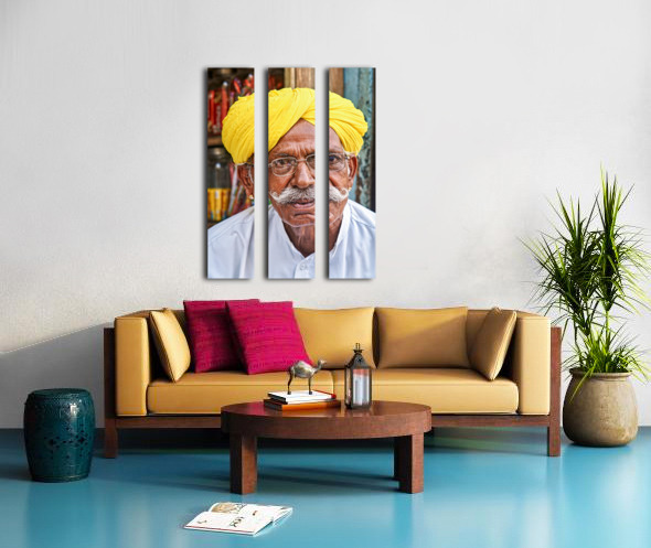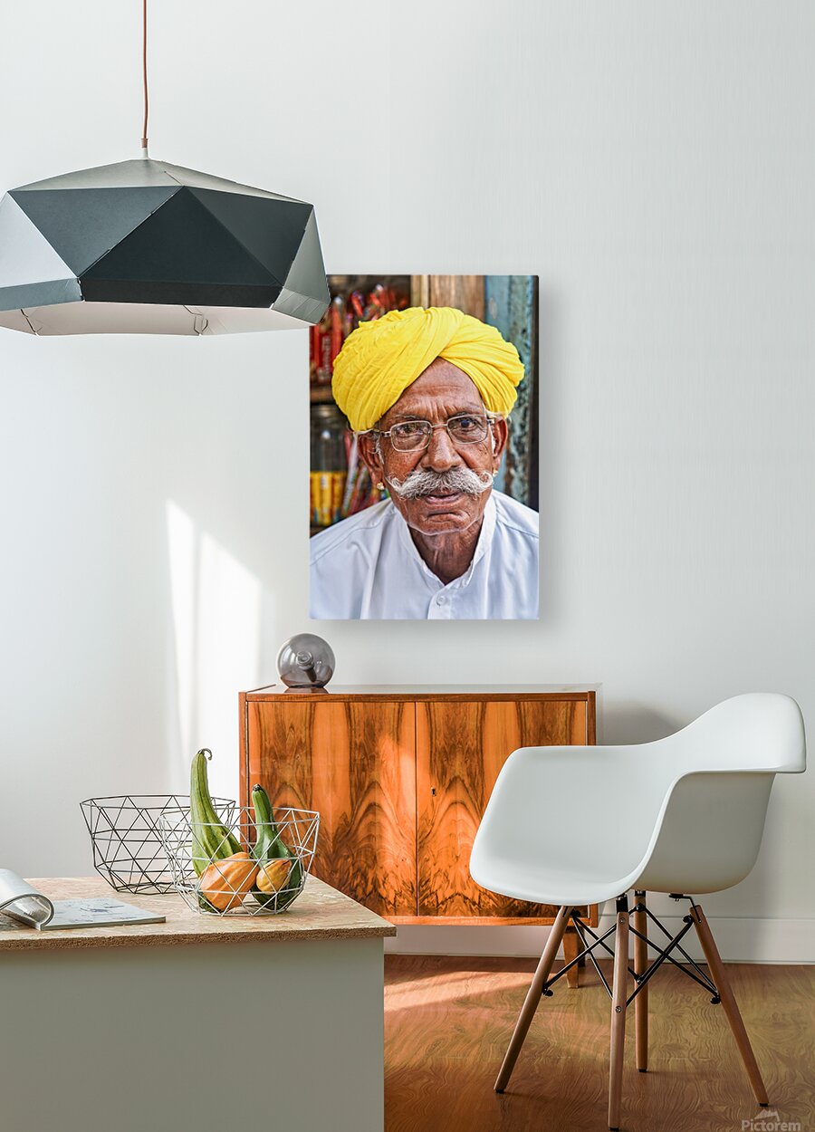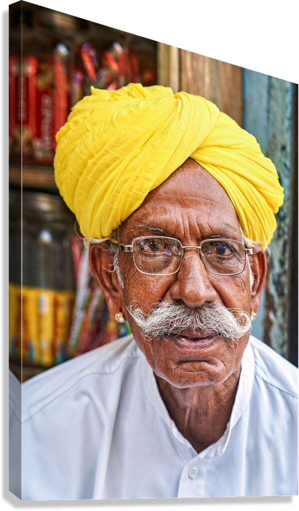 SUR CETTE OEUVRE: SENIOR MAN IN YELLOW TURBAN IN JAISALMER RAJASTHAN INDIA