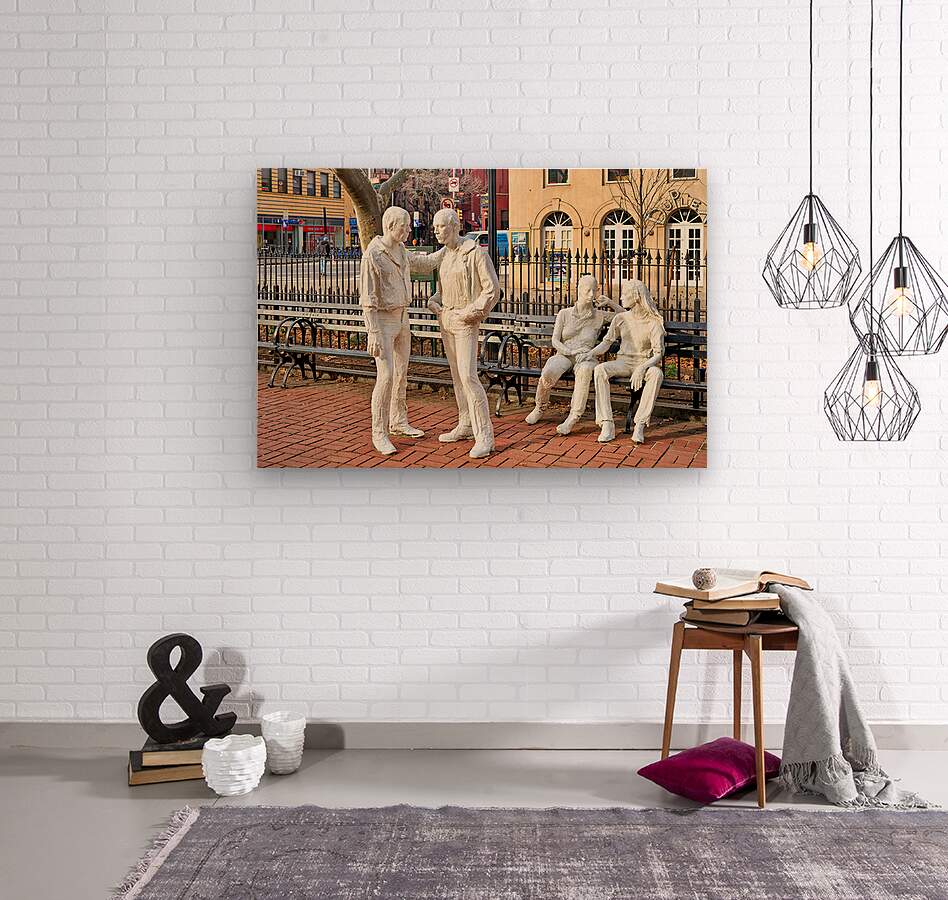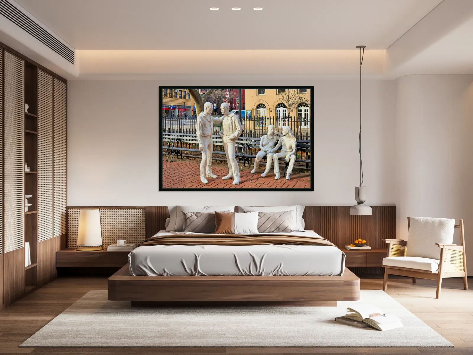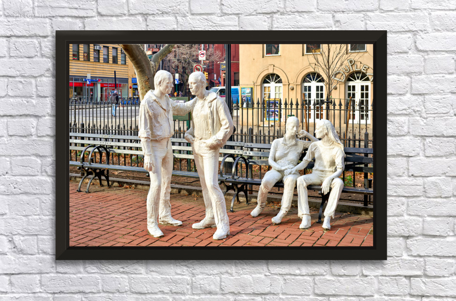 George Segals Gay Liberation sculpture shows four figures in Christopher Park Manhattan capturing a moment in time related to LGBTQ+ history.