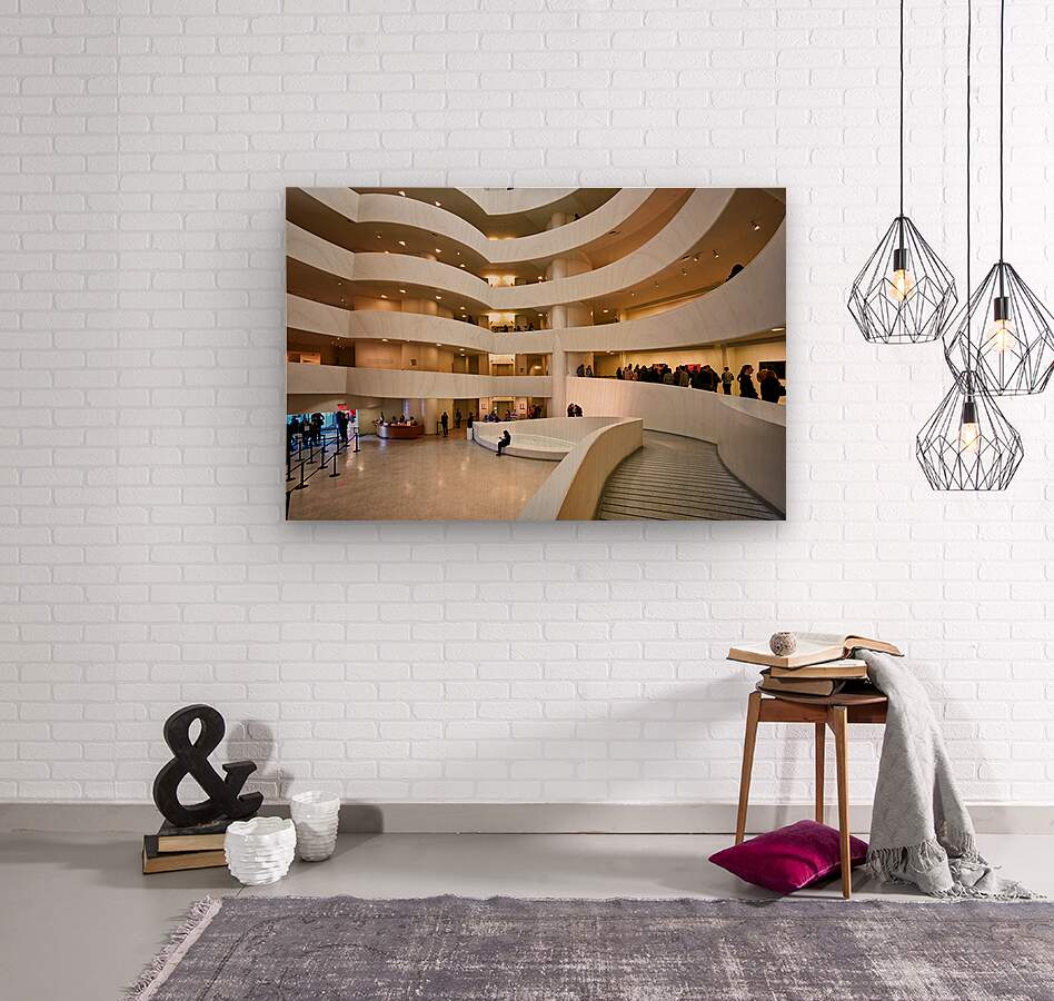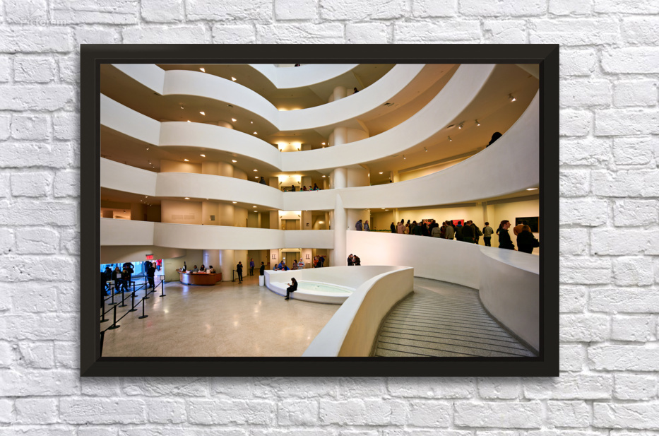 "Visitors explore interior of Solomon R. Guggenheim Museum in New" dans une impression encadrée.
